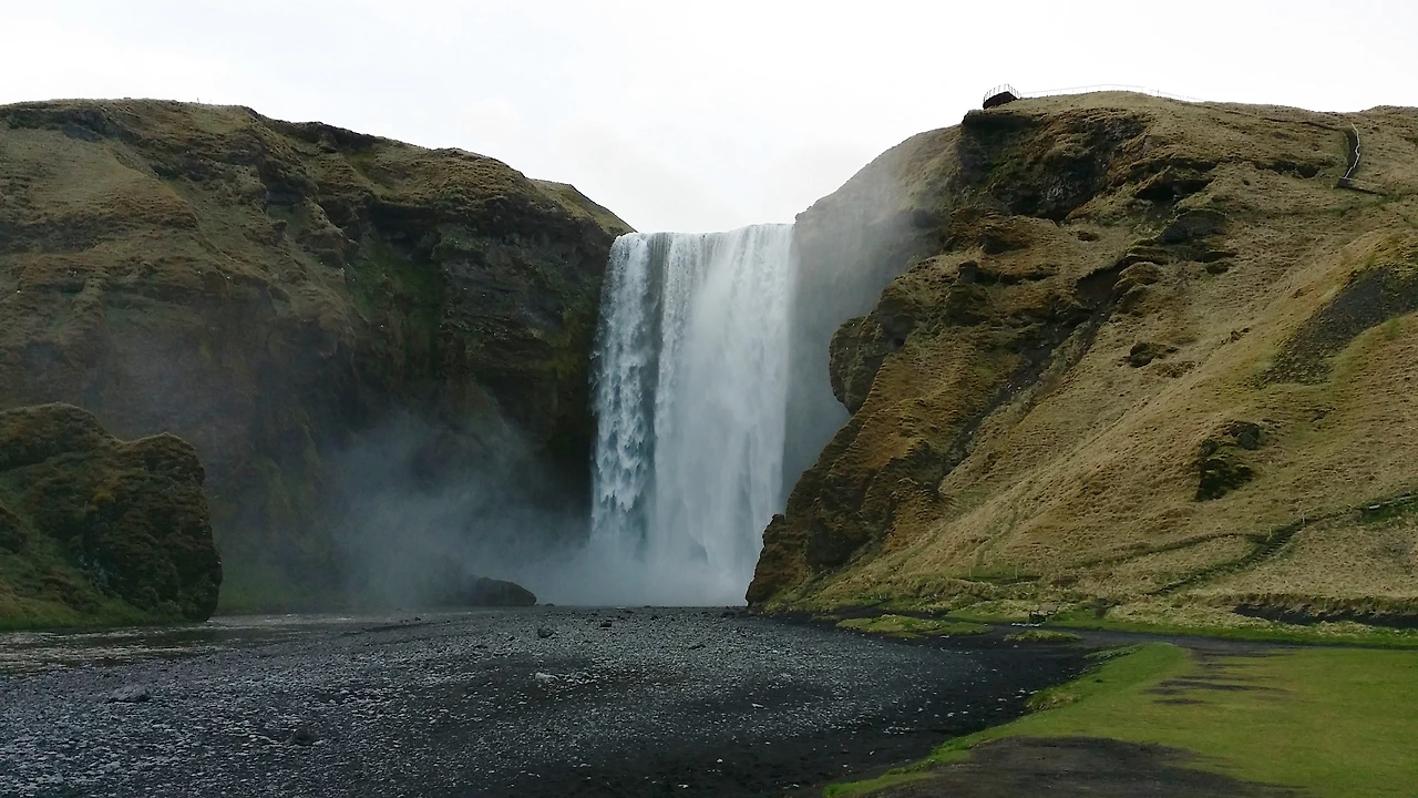 아이슬란드를 한바퀴 빙 둘러 돌아가는 1번 국도릉 Ringroad라고 합니다. 우리는 6박 7일 동안 Ringroad투어를 했습니다. 그중 남쪽을 대표하는 Skogafoss입니다. 우리에게는 Seljalandsfoss의 감흥이 지지 않아, Skogafoss는 크고/멋지고/잘생긴 폭포로 기억에 남습니다. 아래쪽에서는 물보라가 온몸을 휘감고, 60미터에 이르는 물줄기 주변으로는 수많은 새들이 둥지를 틀고 날아다닙니다. 위로 올라가는 계단이 보이고 그 위에서 넋을 잃고 풍경을 즐기는 몇몇의 사람들이 보입니다. 조금을 더 달려 Vik에서 두 번째 잠을 잡니다. Vik은 남쪽의 2개의 도시 중에 하나입니다만, 숙소는 3개 정도 만 있습니다. 이제부터는 그나마 사람들을 만나고 그들의 목소리를 들을 수 있는 곳은 숙소가 거의 유일하게 됩니다. 사람에 지쳐있던 시기였기 때문에 고마운 여행이 됩니다.