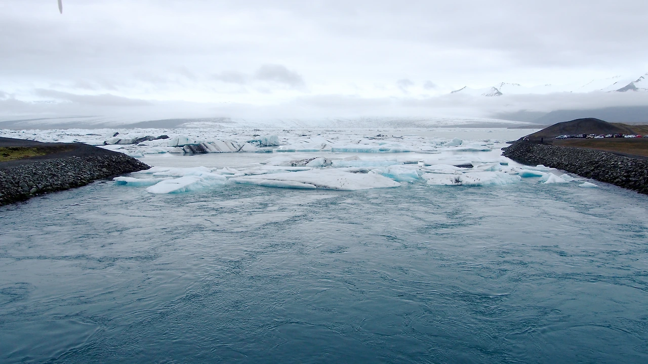 끝도 없이 흘러 내립니다. 우리는 Jokulsarlon에 도착했습니다.