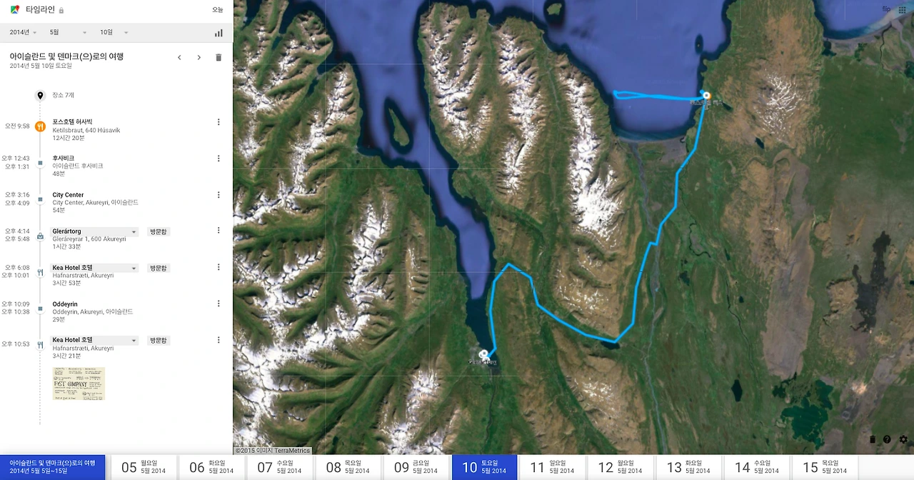 오늘로서 이동이 많은 여행은 끝이 납니다. 앞으로 이틀은 보다 더 여유를 즐기며 Iceland를 감상하기로 합니다. 녹녹해진 몸으로 북쪽의 항구도시인인 Husavik으로 이동해 잠을 청합니다.