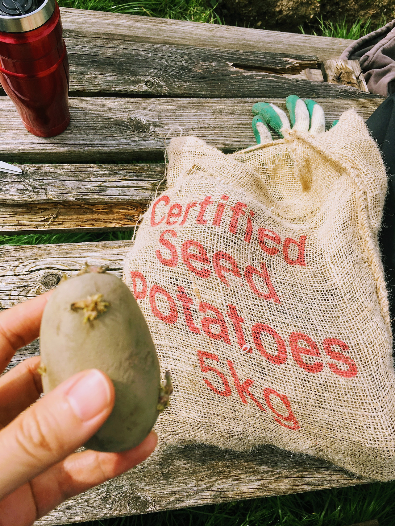 두 번째로 감자를 심으러 가는 날, 자전거를 타고 달리는데 정원의 예쁨이 자꾸 생각나 히죽히죽 웃음이 났다. 감자를 심는 일은 싹이 울쑥불쑥 돋은 감자 한 마리를 땅에 집어 넣는 일이었다. 한 명이 발로 삽을 땅에 깊게 밀어 넣으면, 다른 한 명이 삽을 빼는 사이 감자를 쏙 집어 넣었다. 깊이가 꽤나 깊어 감자를 떨어트리면 감자가 감쪽같이 어딘가로 사라졌다. 마치 지구 반대편 어딘가로 감자가 빠져나가는 것 같았다.