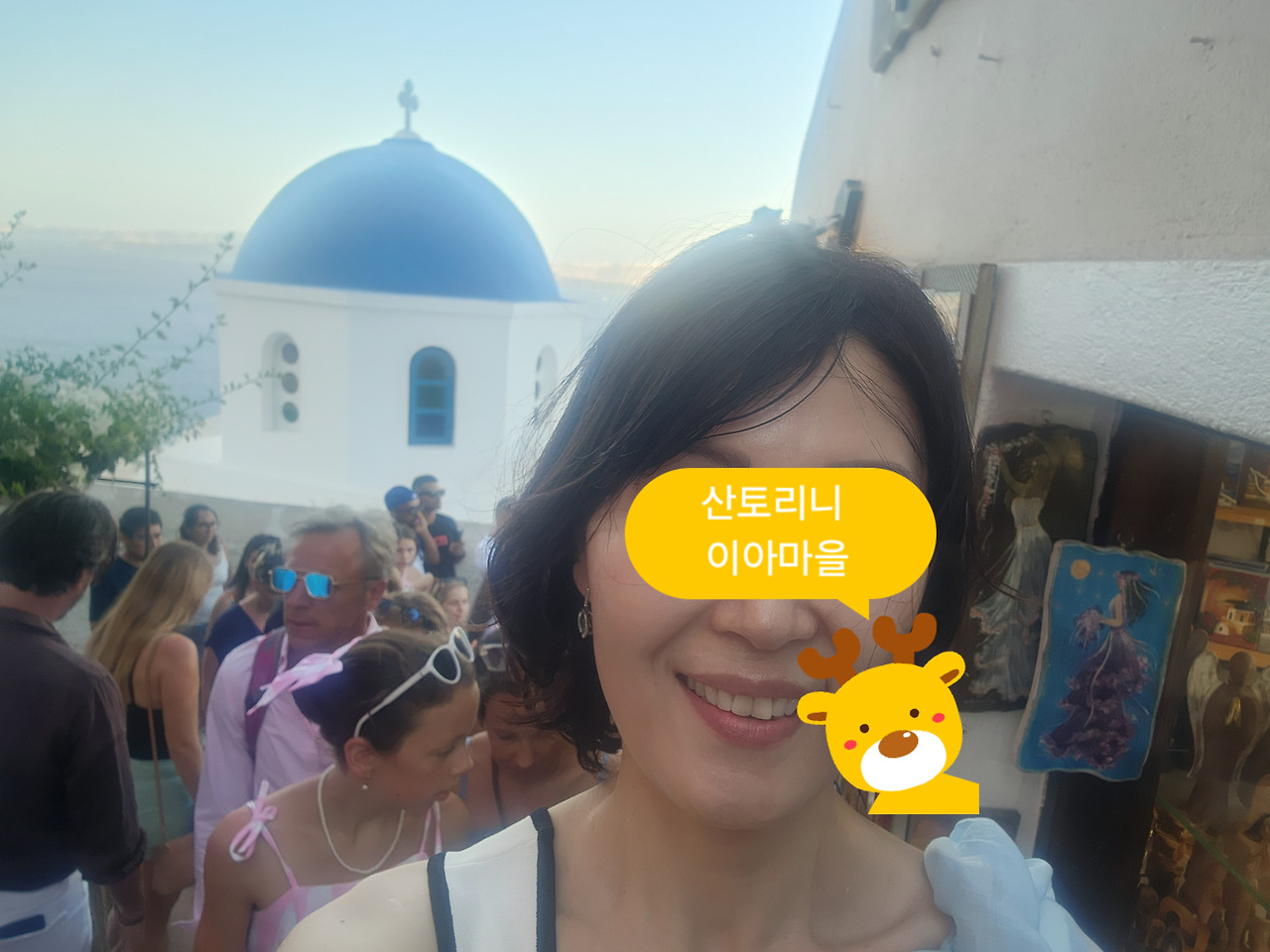 이아 마을의 블루돔 앞에서 찍은 사진을 보내왔다.