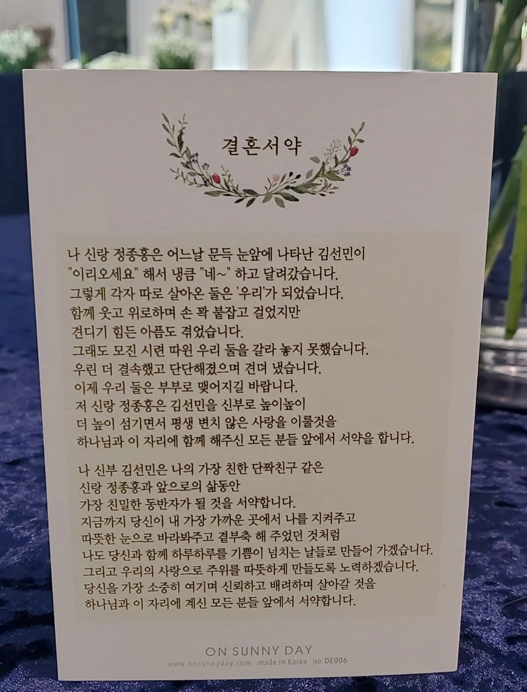 우리가 직접 쓴 혼인서약서도 읽었다.