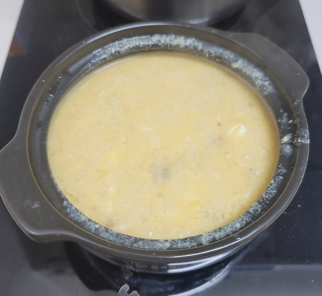 오늘 저녁은 남은 전복죽에 된장과 계란을 풀어서 된장 계란죽을 만들어 먹었다.