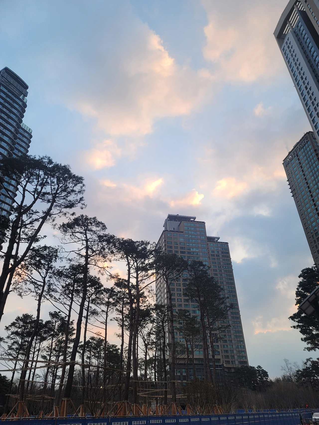 아침 눈을 뜨자마자 든든히 옷을 챙겨 입고 밖으로 뛰쳐나왔다. 가까운 공원으로 걸어가는 내 눈앞에 오묘한 빛깔의 구름과 여명이 나타나고 나를 반겨주는 느낌이었다. 추울 줄 알았는데 아침 공기가 상쾌하게 코로 들어왔다.
