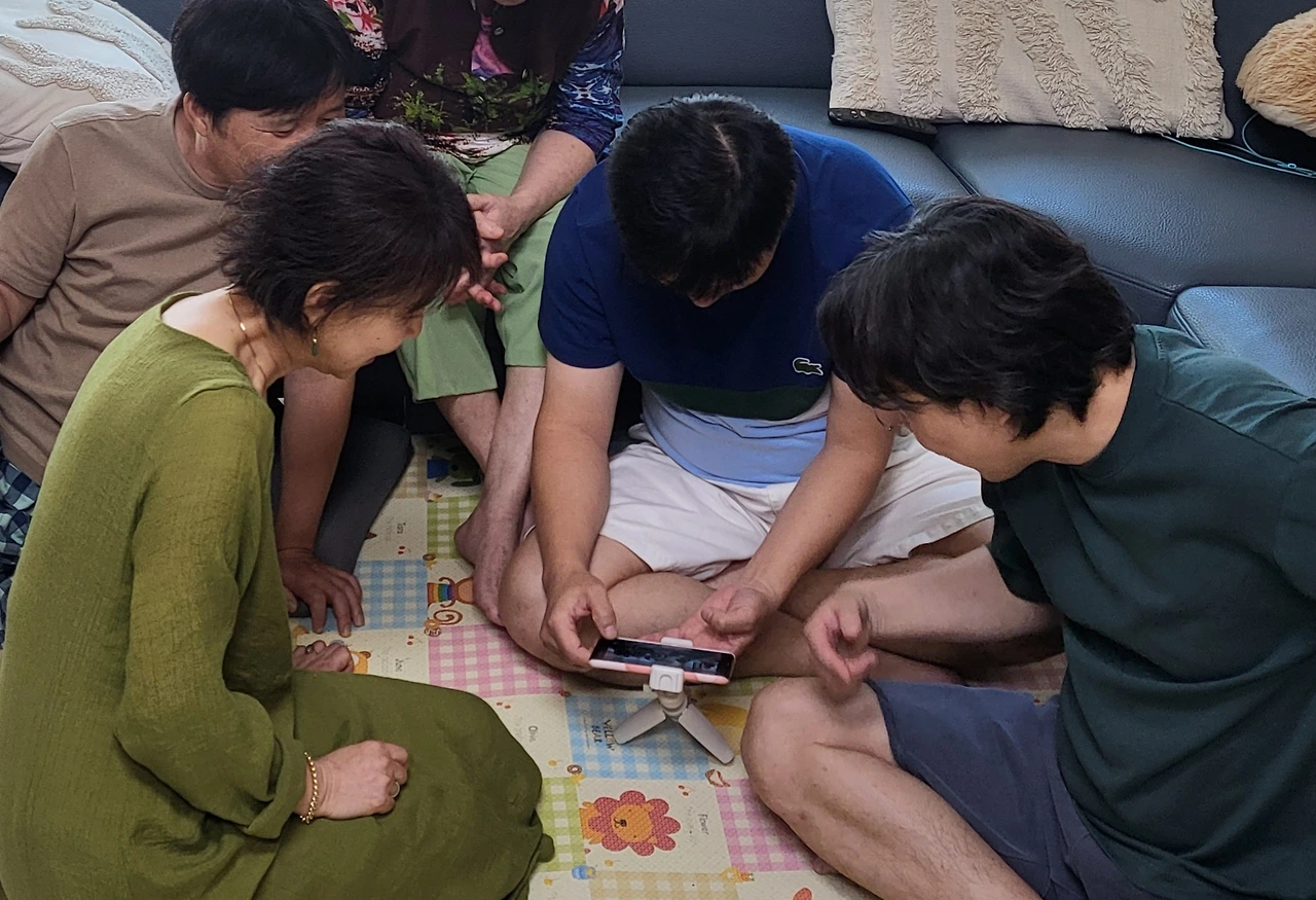" 이거 돌려보면 되겠다" 하셨고 네 명의 오누이분들이 머리를 맞대고 비디오 판독 중이신 사진을 기 막혀하며 동서가 사진을 찍으셨다.