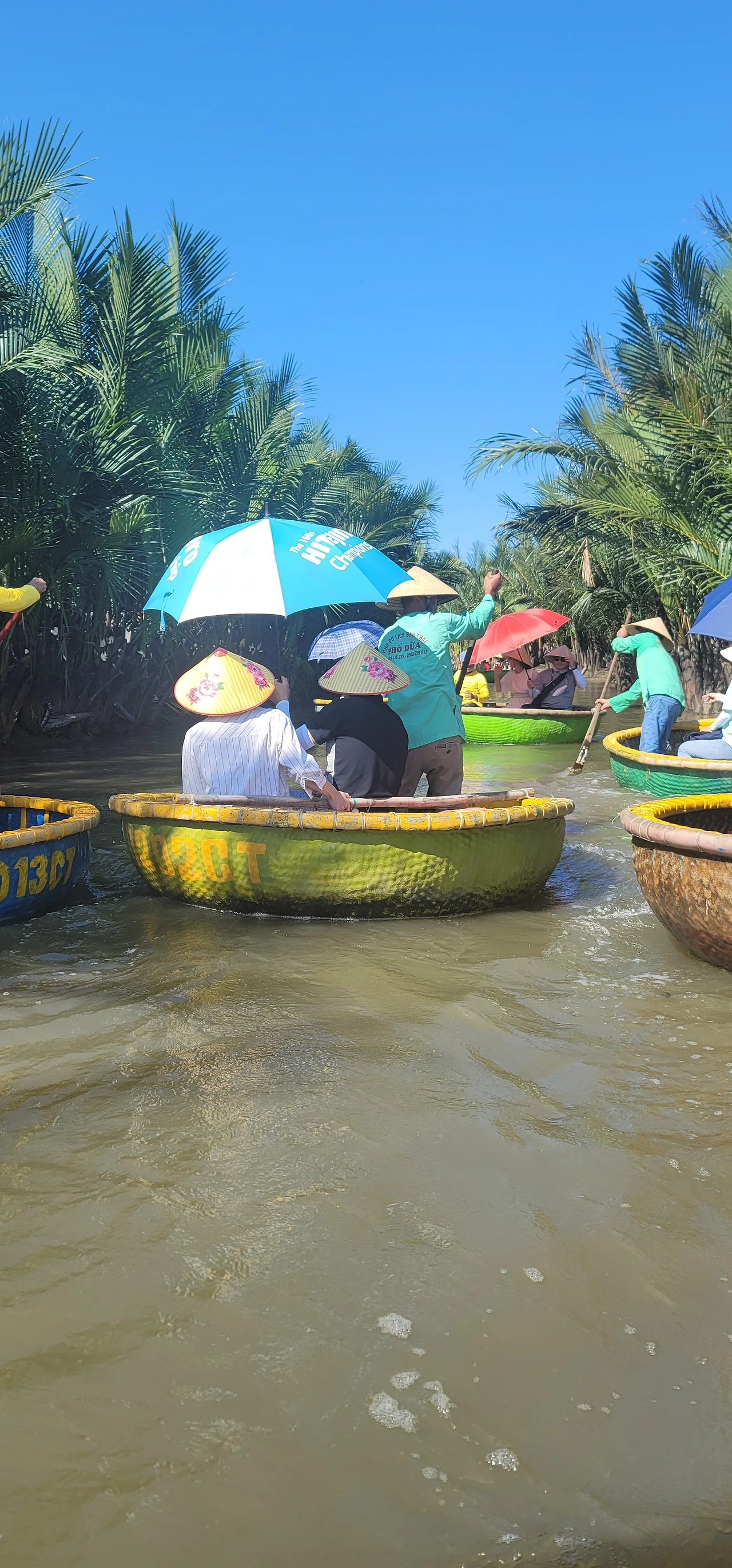 우리나라 트로트 음악을 크게 들어놓고 2명씩 바구니 배에 타고 베트남 사람이 노를 저어 구정물 같은 곳을 20분 정도 투어 하는 거였다.