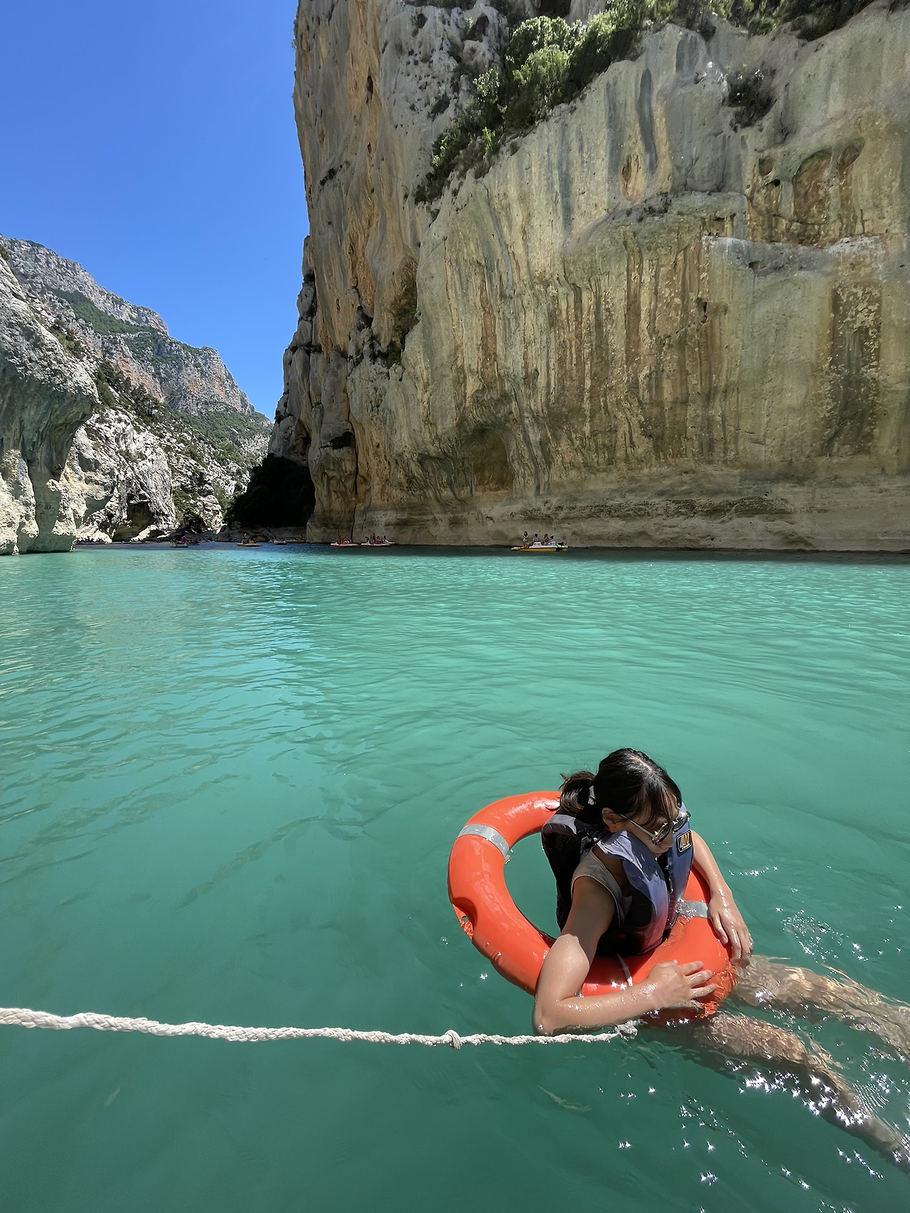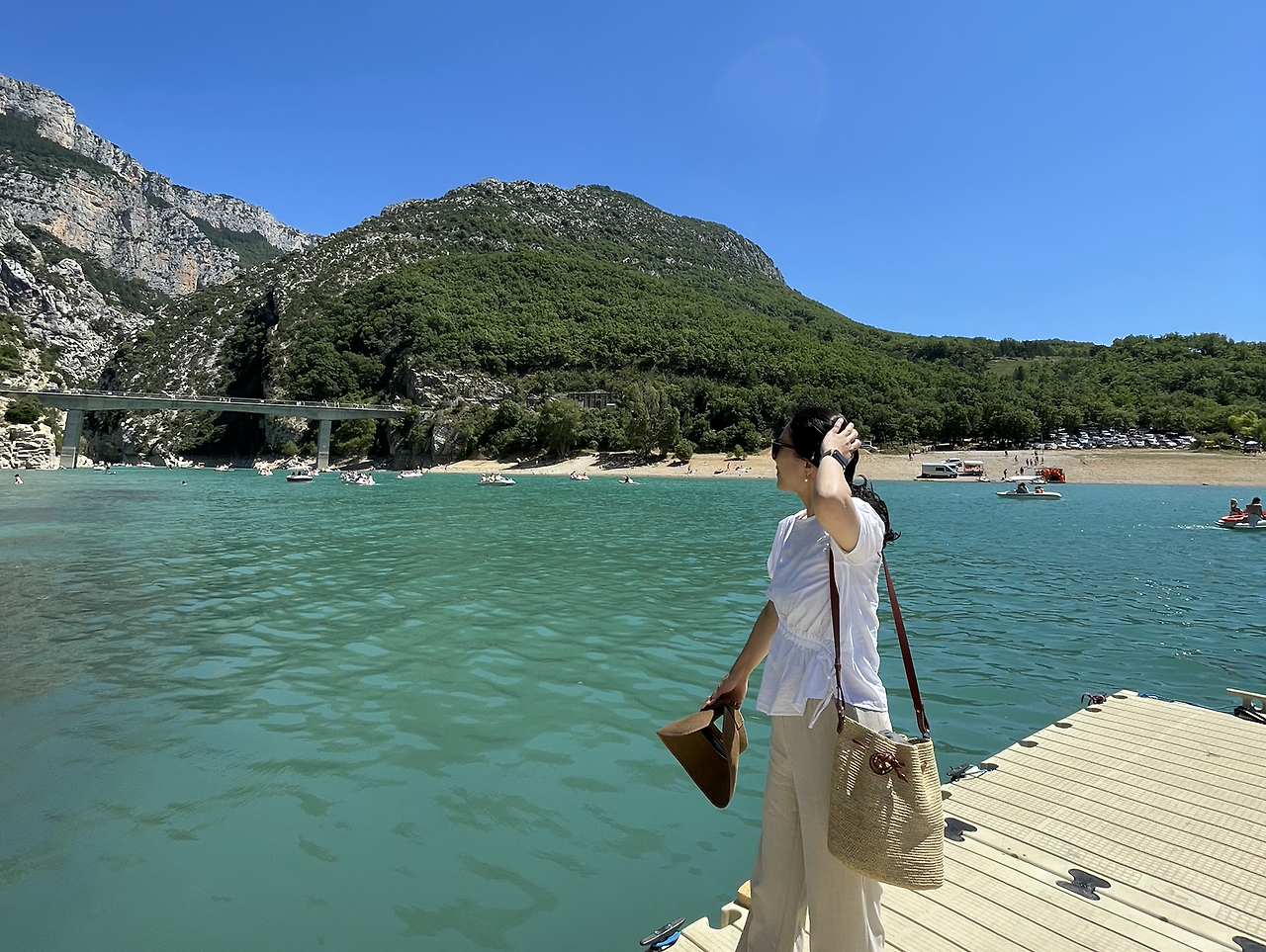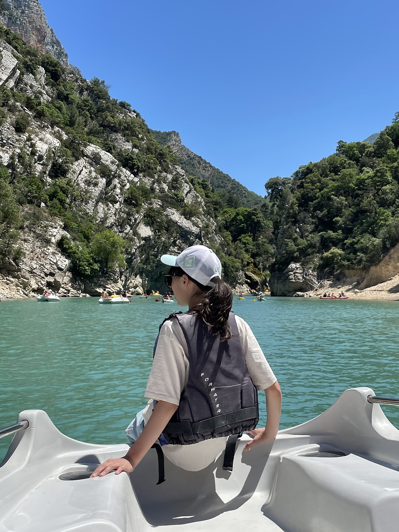 일행들과 담소를 나누다 보니 어느덧 목적지에 다 달았다. 유럽의 그랜드 캐니언이라고 불린다는 프랑스 베흐동 협곡을 구경하며 구비구비 산고개를 넘었다. 알프스 끝자락이 만들어내는 아찔한 협곡을 지나고 나니 생트크화 호수의 에메랄드빛 물이 햇빛에 반짝였다. 엽서 같은 풍경 속에서 아이와 단둘이 패들보트를 탈 수 있다고 생각하니 마냥 신났다. 강렬한 햇빛에 팔뚝이 빨갛게 달아오르는지도 모르고 아이와 둘이 신나게 발을 구르며 페달을 밟았다. 양 옆에 병풍처럼 펼쳐진 협곡 사이에는 저마다의 방식으로 호수를 즐기는 현지인과 여행객들이 있었다. 강아지와 함께 보트에 몸을 실은 사람, 흥겹게 단체로 노래를 부르며 배를 타는 사람들, 절벽에 올라 다이빙을 하는 사람들까지 다양했다. 아이와 나는 번갈아가면서 뱃머리에 앉아 옥빛 호숫물에 발을 담갔다. 시원한 물이 발끝에 닿으니 기분이 상쾌해졌다.