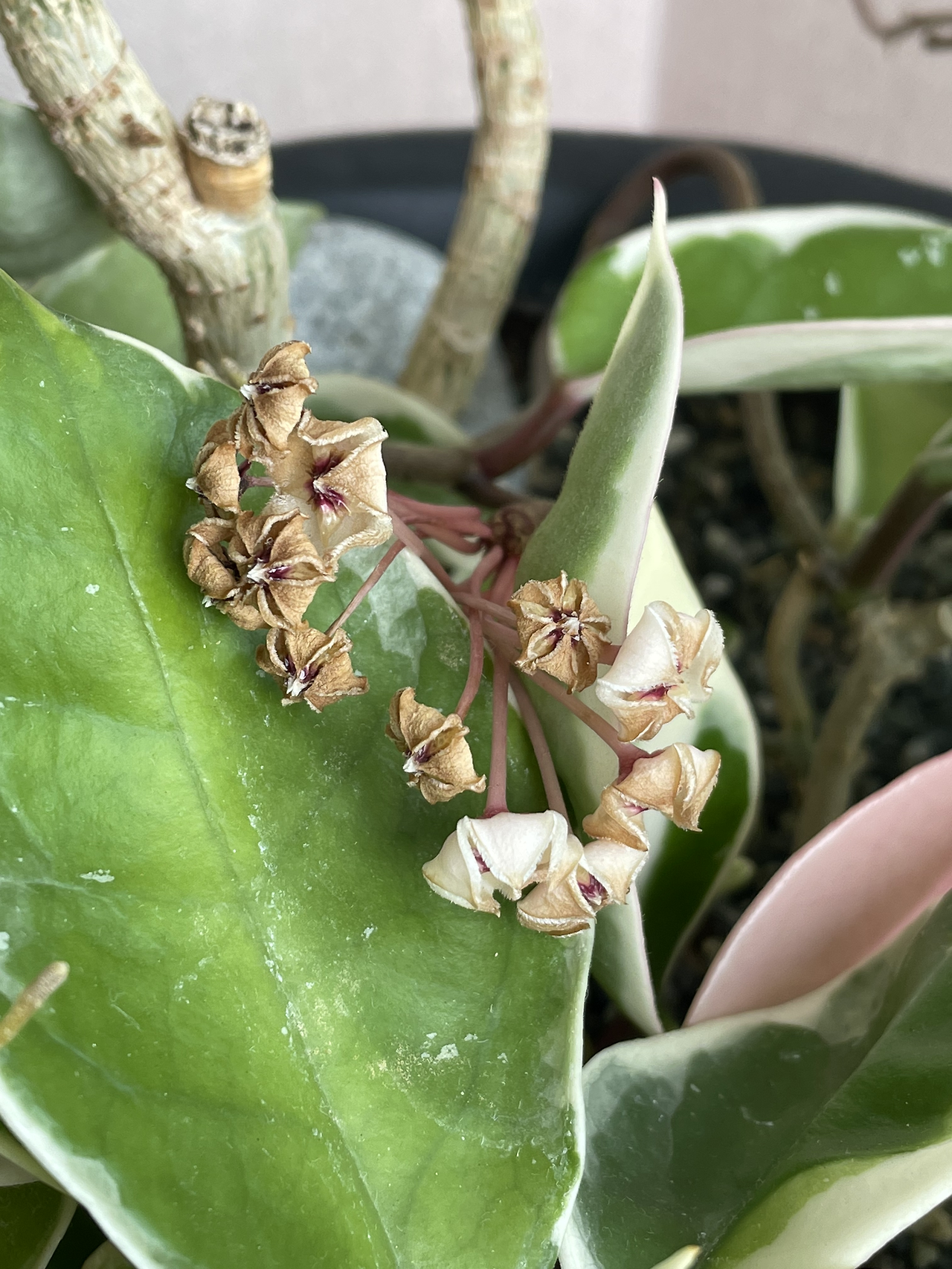 얼마 전 호야 화분에 핀 꽃을 보고 몹시도 감탄했던 날이 있다. 종이 딱지를 정교하게 접어둔 것 같은 정오각형 꽃봉오리가 펼쳐지면 별처럼 반짝이는 모습이 나타났다. 정성스럽게 빚은 작은 도자기 같은 모습이 참 신기했다. 그런데 더 경이로웠던 순간은 호야꽃의 마지막을 볼 때였다. 물기를 머금은 듯 촉촉하고 도톰했던 꽃잎은 서서히 말라가고 있었다. 타들어가는 하얀 꽃잎은 분위기 있는 앤틱 갈색으로 변해갔다. 보통의 꽃이라면 이쯤 되면 꽃잎을 주변에 하나둘씩 떨어트렸을 것이다. 호야는 그렇지 않았다. 내가 머물던 자리를 깔끔하게 마무리하듯 펼쳤던 꽃잎을 하나하나 닫았다. 야위고 말라갔지만 세상에 처음 나올 때 모습으로 되돌아가는 호야꽃이 신기하고 한편으로는 부러웠다.
