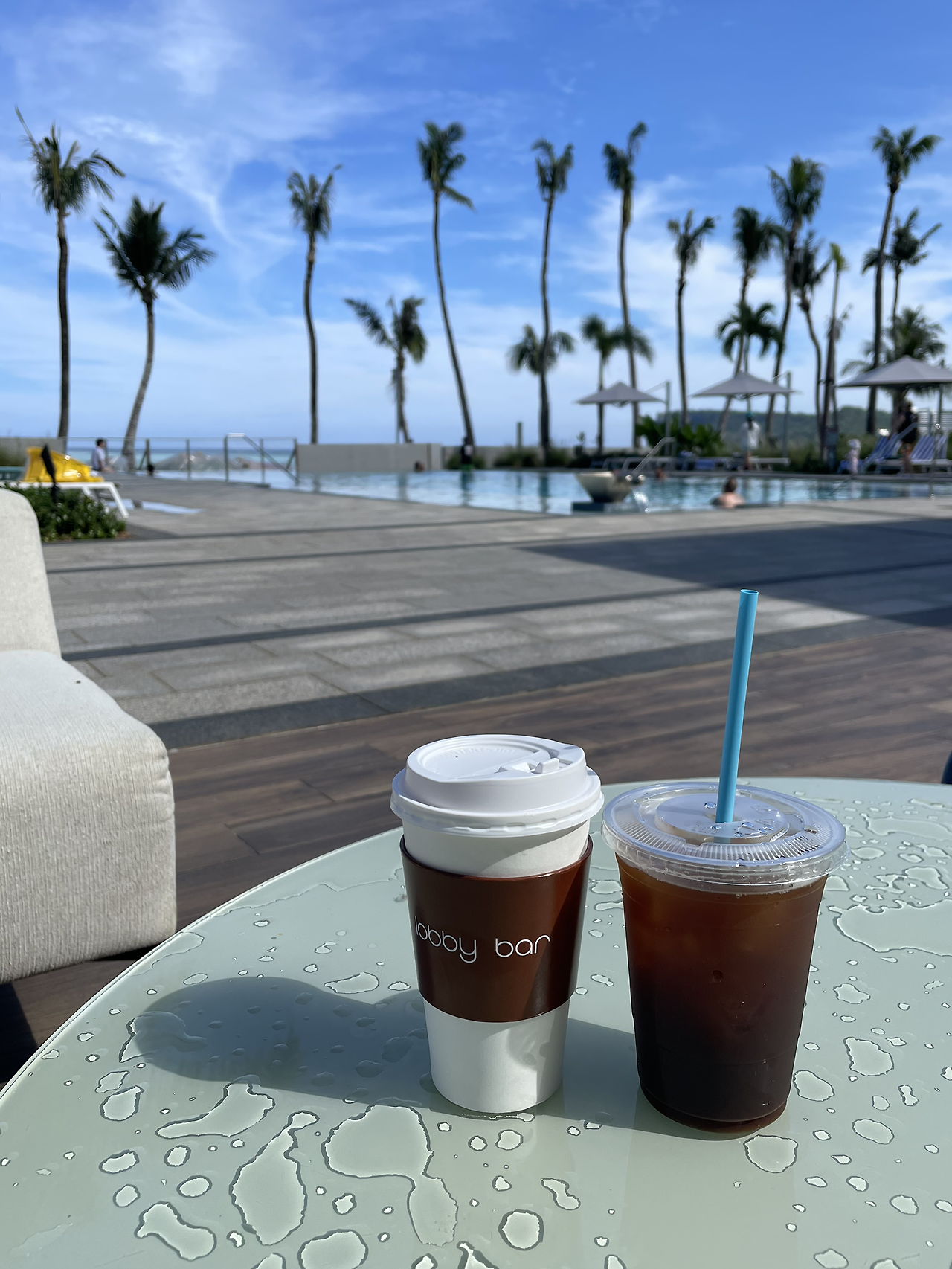 셋째 날 아침, 아이들을 수영장에 풀어두고 썬베드에 누웠다. 예쁜 하늘과 야자수, 살랑살랑 불어오는 바람, 여기에 딱 한 가지만 더하면 완벽할 것 같았다. 이런 내 마음을 알아차린 건지 친정아빠를 모시고 골프장에 간 오빠한테 메시지가 왔다. “커피 마시고 싶으면 시켜 먹고, 애들 배고프다고 하면 피자랑 햄버거도 주문해.“ 여럿이 여행 오면 커피 한잔에도 이렇게 눈치 보게 되는 걸까? 소심한 내 모습이 우습긴 했지만 며칠 만에 커피를 마실 수 있다는 생각에 마냥 기분이 좋아졌다.