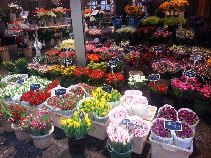 피곤한 줄도 모르고 꾹꾹 알차게 채워 넣은 첫날 저녁 일정을 마무리 짓고 잠자리에 들었다. 다음날 아침 꽃시장에 갈 생각에 알람이 울리기도 전에 눈이 떠졌다. 암스테르담 싱겔 운하를 따라서 플라워 마켓이 열린다고 한다. 여유가 된다면 근교에 나가 드넓은 튤립 꽃밭과 풍차까지 보면 좋겠지만, 도심 속 꽃시장만 해도 그저 감사했다. 둘째 날도 전날 뮤지엄에 갈 때처럼 트램을 타고 싱겔 운하로 향했다. 겨울이라 생화 대신 조화를 파는 집이 많았다. 다행히도 한 집에서 생화를 다양하게 판매하고 있었다. 그중에서도 네덜란드의 꽃, 튤립이 대표선수처럼 제일 앞 단을 장식하고 있었다. 싱그러운 튤립 한 단 품에 안고 돌아다니고 싶었지만, 짧은 일정이 야속할 뿐이었다.