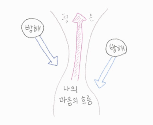 '내 마음의 평화와 안정'을 목표로 두고 그 고요함이 깨지지 않는 것에 집중한다면, 물이 바위를 둘러싸며 유연하게 흐르듯이 우리의 걸음도 유유히 나아갈 수 있을 것이다.