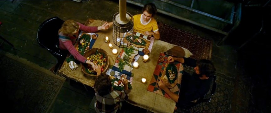 가족은 수화로 말 한다. ‘절대 소리를 내면 안 돼, 그 장난감은 안 돼!’ 아빠가 내려놓은 장난감을 뒤에 오던 누나가 웃으면서 아이에게 살짝 준다. 그리고 이어 아이는 빼놓은 건전지까지 들고 나온다. 아이가 꼬옥 잡고 있는 건전지는 불행을 암시하는 물건임을 짐작할 수 있다.