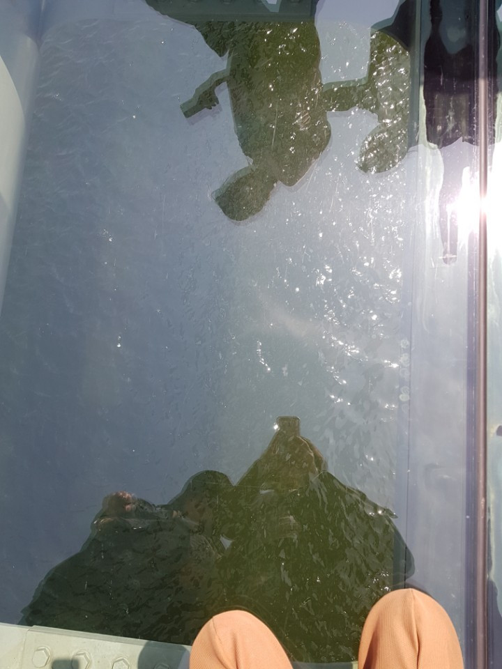 택시를 타고 스카이 워커에 도착했다. ‘하늘을 걷는다?’ 우린 표를 끊고 유리보호용 커다란 양말을 신발 위에 신고 유리로 된 다리를 건넜다. 아래는 시퍼런 강물이 출렁대며 입을 벌리고 있었다. 여차하면 떨어질 것 같은 낭떠러지 위에 선 느낌이었다. 몇몇 분들은 무서움에 걷기를 포기하고 되돌아갔다. 투명한 유리가 빛을 받아 무지개처럼 영롱했다. 사람들이 스릴을 맛볼 수 있도록 착안된 유리다리지만, 유리 아래 세상은 너무도 위험해 보였다. 문득 인생길도 이처럼 아슬아슬함으로 점철된 것은 아닌지 생각해 본다.