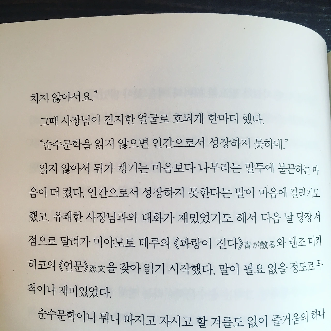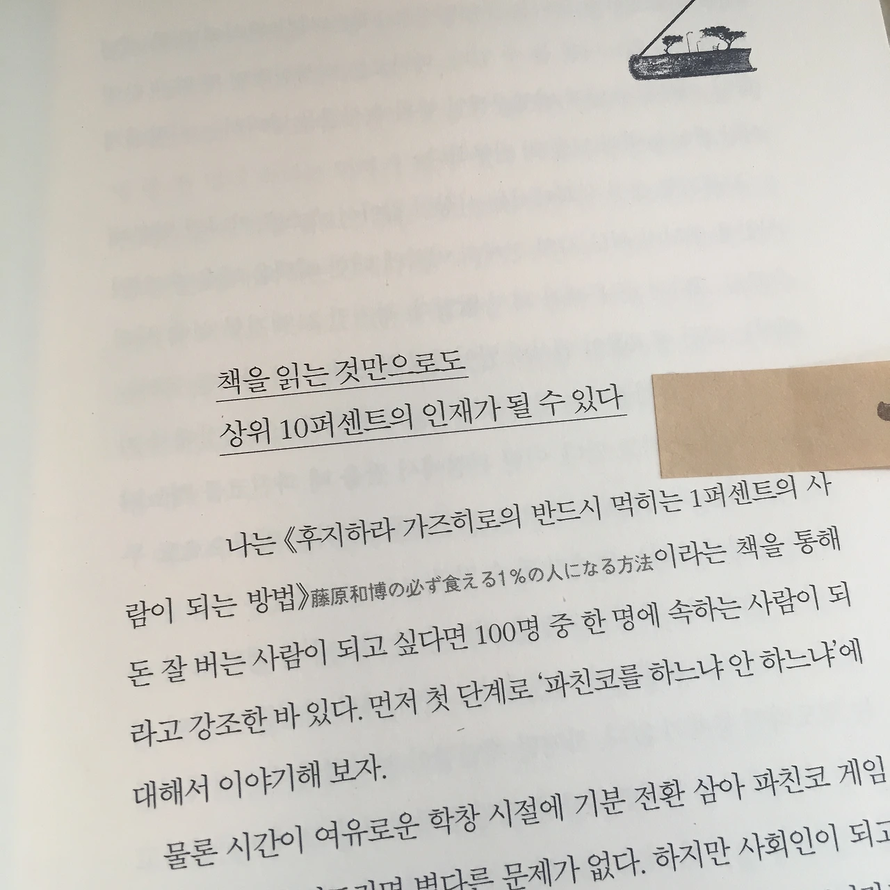 책 읽기를 위한 동기부여가 가득한 이 책은 일본인 특유의 섬세하고 다정함이 느껴져 사이토 다카시의 책과 비슷하지만 다름도 느껴진다. 아마도 내가 읽는 ‘후지하라 가즈히로의 첫 책’이기 때문일 것이다. 한 번 가볍게 읽기에 좋은 책이었다.