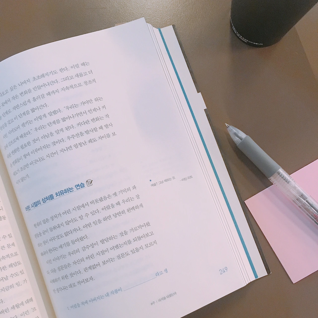 지난 5~6회 모임에서 본문을 읽거나 과제 나누기 등 생각을 정리하는 활동을 하지 않아서 오랜만에 마음이나 생각을 교류할 수 있었던 시간이었다. 2달 이상 모여 이야기를 나누다 보니 점점 더 속마음을 꺼내게 되었지만, 깊이 있는 대화가 부담스럽지 않았다. 함께 모인 사람뿐 아니라 주변의 다른 사람의 입장도 어렴풋이나마 이해되었다. 마치 내가 마더 테레사가 된 듯 인간에 대한 이해가 깊어지는 시간이었다.