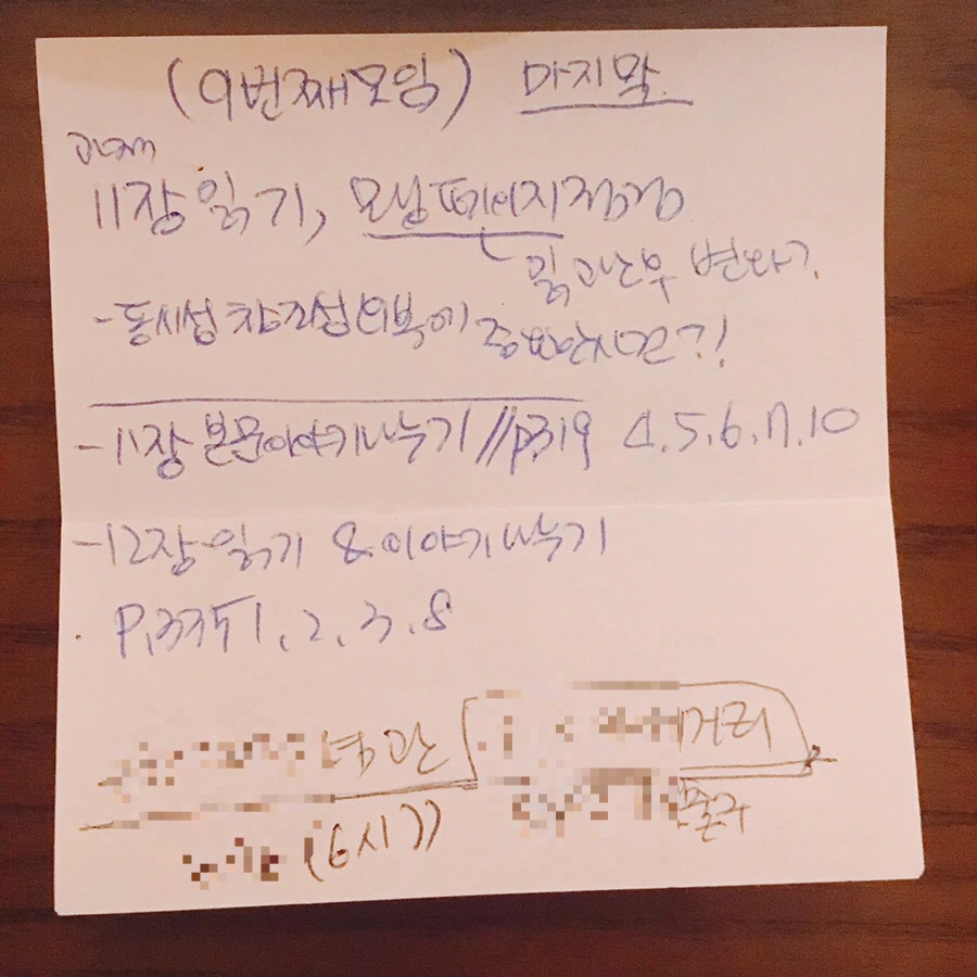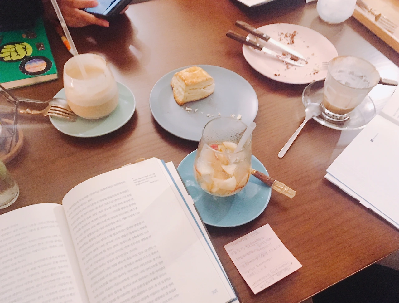 이번 모임에서는 9장 과제였던 ‘모닝 페이지를 읽고 깨달은 점 이야기 나누기’와, 11장, 12장 과제를 계획하였다. 이미 힘든 고비들은 지나왔고, 남은 두장 속의 과제 한 두 개쯤은 쉽게 할 수 있을 것 같았다. 하지만 역시나 우리에겐 시간이 모자랐다. 함께 보낸 시간은 아무 이야기를 꺼내도 불편하지 않았고, 그저 좋았다. 요즘 진행 중인 개인적인 일들 덕분에 아쉽지만, 이번 모임이 마지막이 될 것 같다는 이야기를 주고받으며 모였지만, 역시나 수많은 이야깃거리들과 함께 나눈 시간을 가늠할 수 없을 만큼 집중한 시간 덕분에 11장 과제 1개를 겨우 나눴을 뿐이다. 그래서 2주 후 마지막 모임을 갖기로 했다. 뒤풀이 겸 12장 과제를 나누는 시간.
