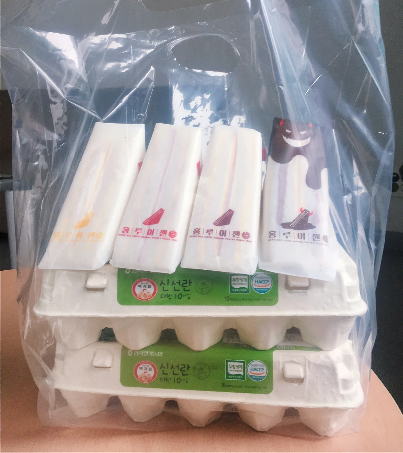 쾌적하고 여유로운 십여분을 보내고 사은품으로 계란 2판을 받아 들고 나왔다. 쇼핑백 없이 계란 2판과 우산, 가방을 들고 나오느라 걸음이 불편했지만, ‘뭐 어떠랴 원하는 걸 빠른 시간에 다 해냈는 걸!’이라고 생각하던 찰나 ‘홍루이젠’을 발견했다. 끌리듯 들어가 샌드위치와 밀크티를 주문했더니 계란판까지 들어가는 큰 쇼핑백을 주셨다. 센스 넘치는 청구역 홍루이젠 사장님 대박 나세요!!