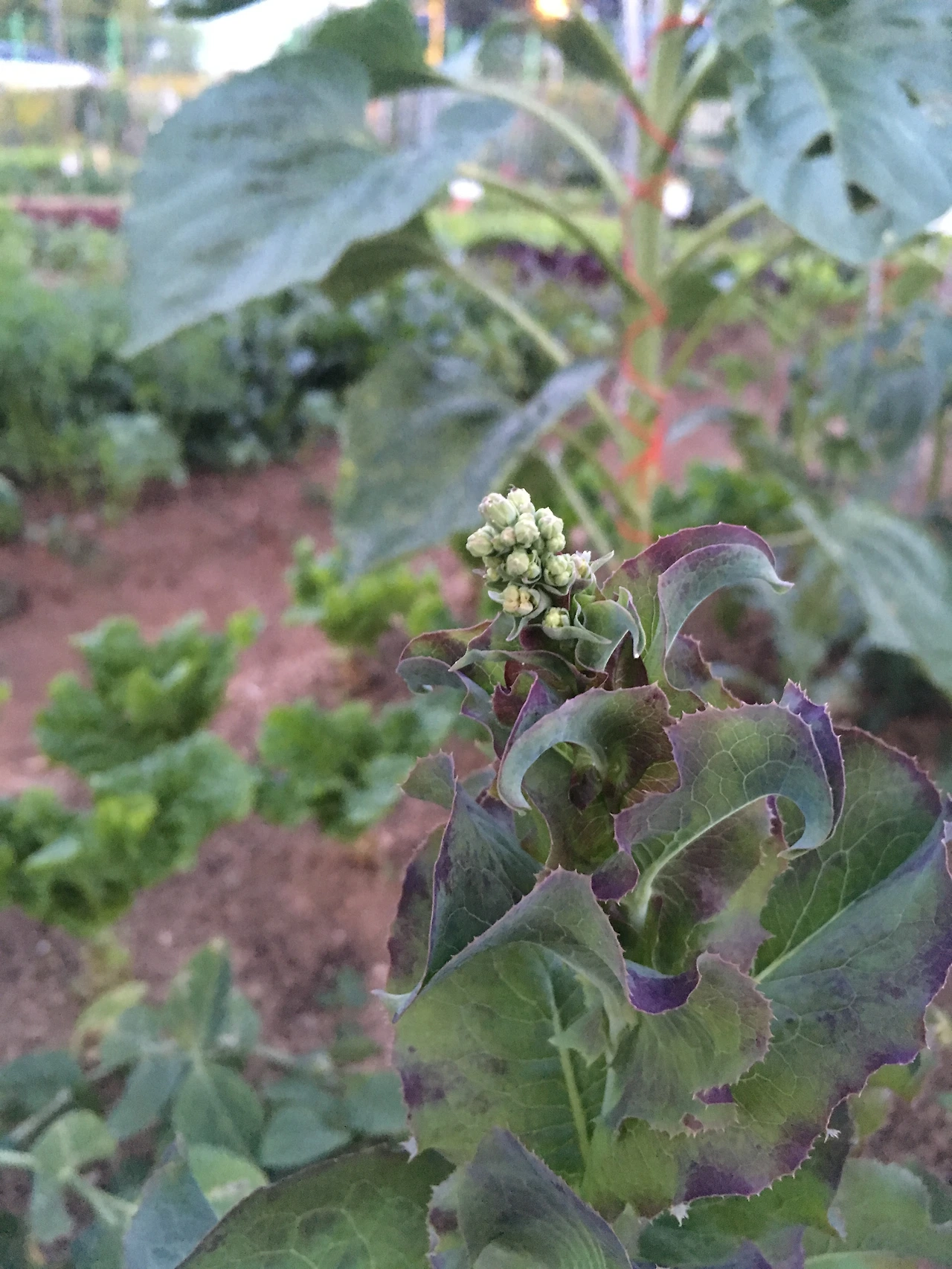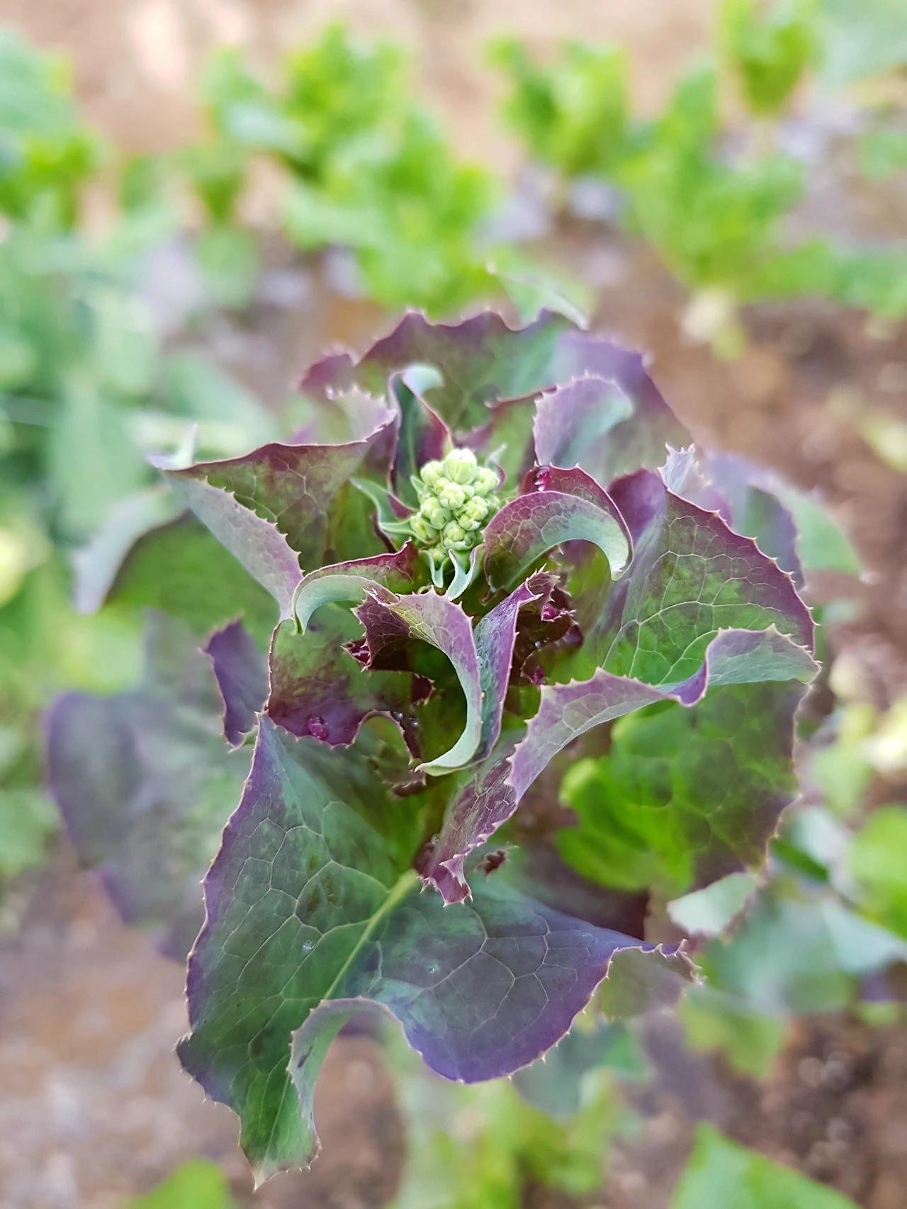 물과 바람, 햇빛, 흙만 있다면 어디에서든 쑥쑥 자라나는 텃밭 채소 중 상추에게 눈이 간다. 평소엔 연두 같은 녹색과 갈색의 빛깔을 띄다가 꽃망울이 생길 시기가 되면 온 전체가 반짝이는 은빛으로 반짝인다. 그러다 갈색이 보라색으로 변한다.
