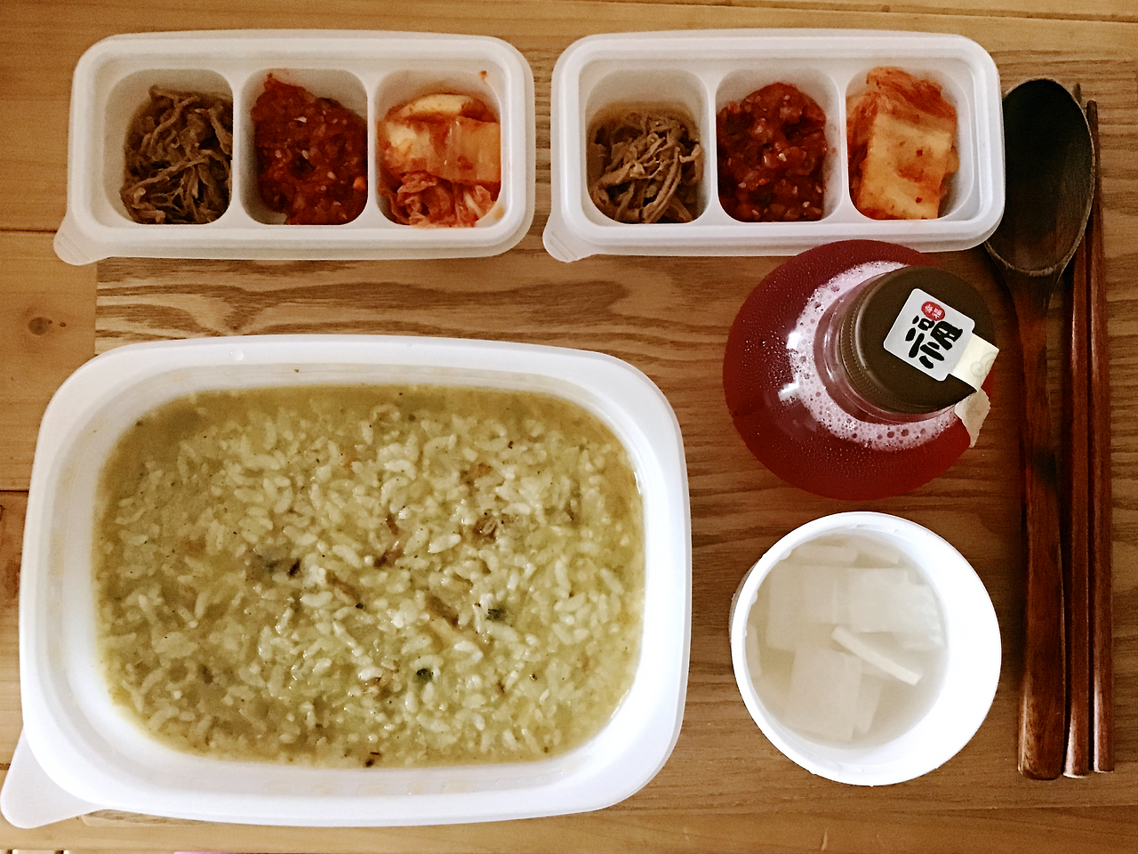 핸드폰 클릭 몇 번으로 죽을 구입할 수 있는 신세계에 살고 있었다. 물론 배달료가 3천 원, 택배값만큼 든다. 하지만 부엌에 서서 무언가를 조리할 에너지가 없는 상태에서 3천 원쯤 감지덕지다. 직원의 센스인지 실수인지 반찬 두 개가 와서 죽을 두 번에 나누어 먹었다.