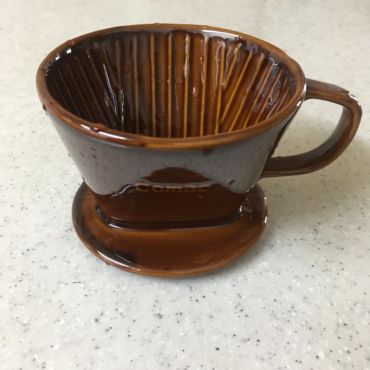 도자기로 만들어진 드리퍼를 샀다. 플라스틱 드리퍼가 초보자, 입문용이라면 도자기 드리퍼는 중급쯤 되는 모양이다. 구멍 크기는 비슷한데 물 내려가는 속도가 느려 플라스틱보다 2배쯤 시간이 더 필요하고, 도자기 특성상 따듯함이 오래 유지된다. 덕분에 커피 빵도 쉽게 가라앉지 않아 신선하지 않은 원두를 사용해도 커피 빵이 만들어진다. 물을 따르는 대로 바로 흘러나오지 않으니 커피의 맛도 조금 깊어졌다.