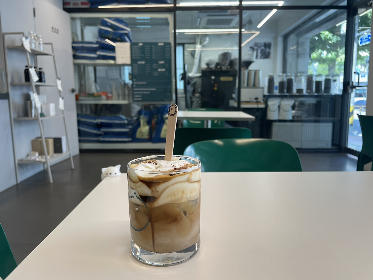 남이 일하는 소리, 창밖의 자동차 소리 같은 백색소음을 들으며 오롯이 아인슈페너를 마시는 행위에 집중하며