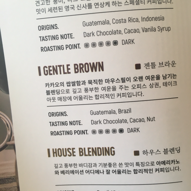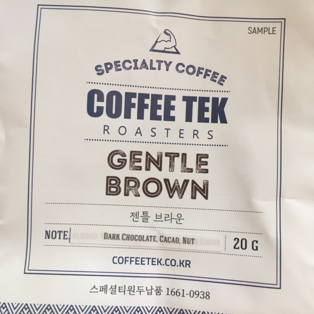 2017 카페쇼에서 많은 걸 득템(!)해와서 골라 마시는 재미가 있는 이 순간이 참 좋다. 오늘은 어제와 다른 것을 마시고 싶어 커피 꾸러미들을 들여다보다 가장 먼저 발견된 커피텍의 젠틀브라운을 꺼냈다. 커피쇼 부스에서 회원가입하고 받아온 원두였는데 아마도 작은 커피숍 같은 곳에 소매 또는 도매로 원두를 파는 원두회사인 것 같다.