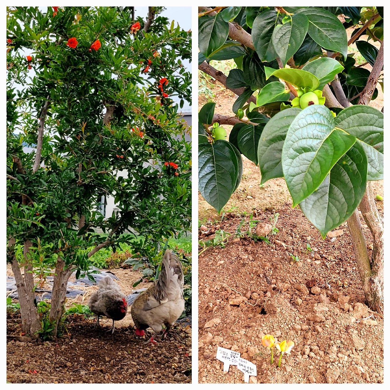 장닭 제우스와 벌레를 쪼아 먹던 연회색 암탉 이오. 천상의 텃밭으로 떠났다. 작은 몸은 당산나무와 가까운 감나무 아래에 스몄다. 혼자 외롭지 말라고 꽃과 안녕의 말을 두 송이씩 넣었다.