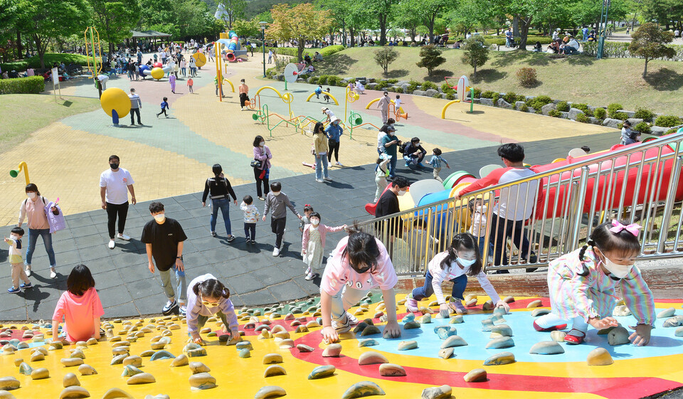어린이들로 가득찬 울산대공원 환경테마 놀이시설. 울산신문 자료사진
