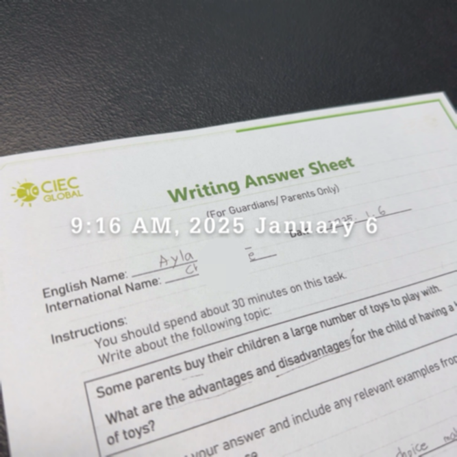 첫 테스트를 쓰기였다. 세상에, 영어 작문을 시킬 줄 몰랐다. 제시문은 이랬다. 눈앞이 캄캄해졌다. 내 아이 둘도 각 방에서 이 당혹스러움을 경험하고 있겠지 싶었다. 그 후 1:1 말하기 테스트도 거쳤다. 휴. 정신이 하나도 없었다. 머릿속에 한국말은 가득한데, 영어로 번역하느라 낑낑거렸다. 결국 더듬더듬 이상한 문장들이 튀어나왔고, 결국 선생님은 “릴렉스”를 말하셨다.