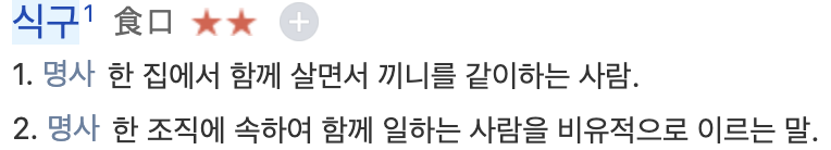 국어사전 속 '식구'가 이런 뜻이니까, 식구가 맞네.