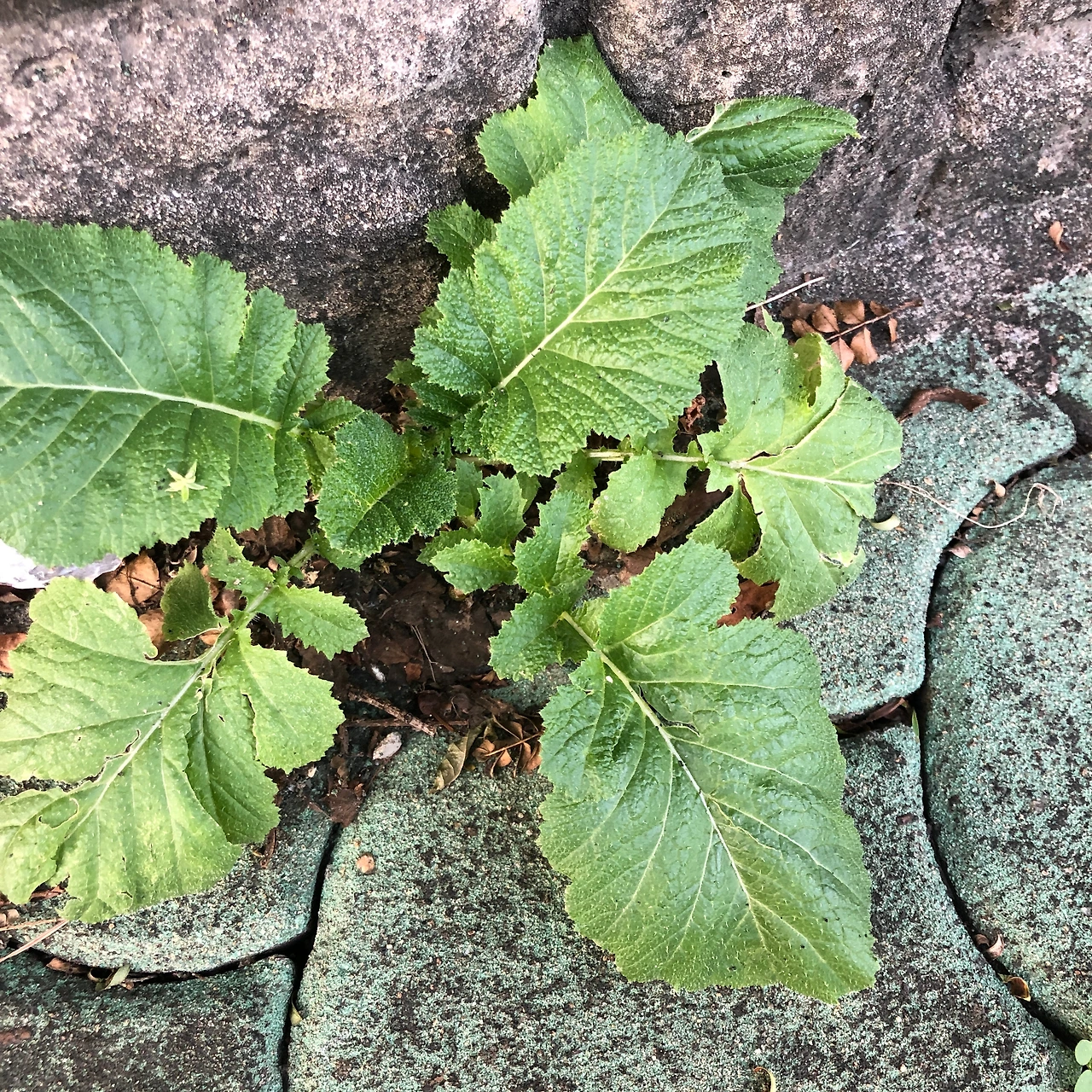 사람이 걷는 길이다. 보도블록과 벽 사이 틈에서 자라고 있었다. 그것도 잎이 무성하게 말이다. 어떻게 여기에 자리 잡게 되었을까.