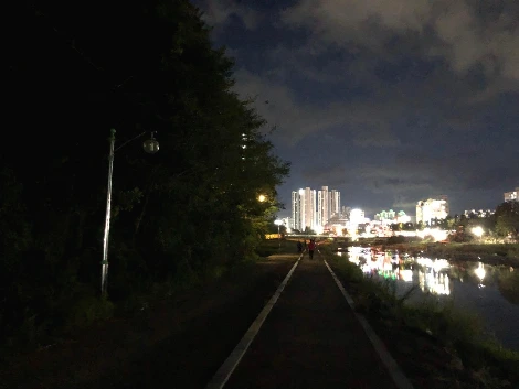 저녁을 먹고, 산책을 나섰다. 한여름에 그 시간대는 훤했다. 앞사람 얼굴도 자세히 보이고 몇 미터 앞에 길도 잘 보였다. 가을이 훌쩍 다가왔는데, 남은 여름 자락이 있겠지 생각하며 강변 산책길로 걸어갔다. 이미 어두웠다. 내 발 앞에 돌멩이도 보이지 않았다. 횡단보도 불빛은 눈부실 정도로 밝았기에, 안전하게 건넜다. 문제는 강변 산책로였다. 태풍에 가로등 두 개가 쓰러졌는데, 아직 복구되지 않았다. 낮에는 그것만 고장 난 줄 알았다. 오늘 현장에 가보니 그 길 가로등 전부에 불이 들어오지 않았다. 평소에는 밤이라도 안전감을 느끼며 걸을 수 있는 길이었다. 오늘은 걸어가면 갈수록 무서워졌다. 횡단보도 쪽 불빛과 멀어질수록 짙은 어둠 속으로 들어가는 느낌이었다.
