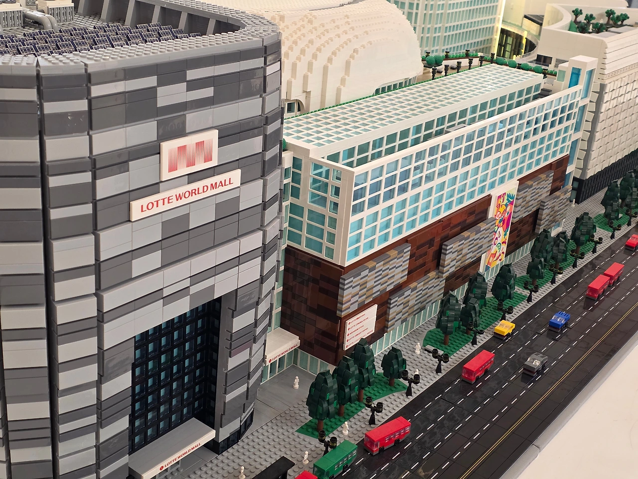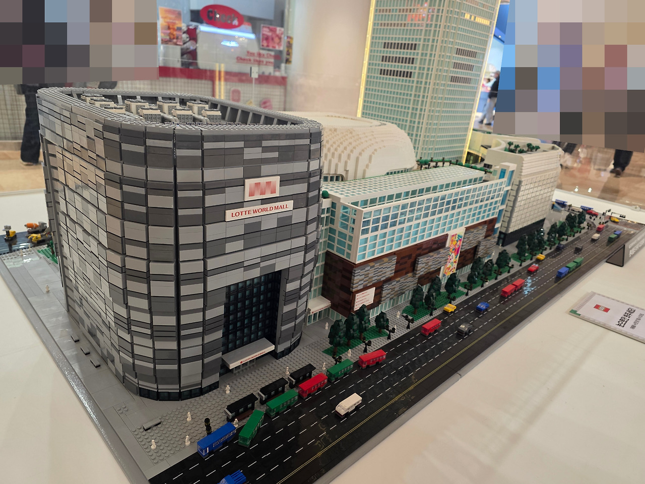 쇼핑몰 내부를 걷다 보니 블록브랜드 40주년와 쇼핑몰 10주년 기념 블록 디오라마가 만들어져 있었다.