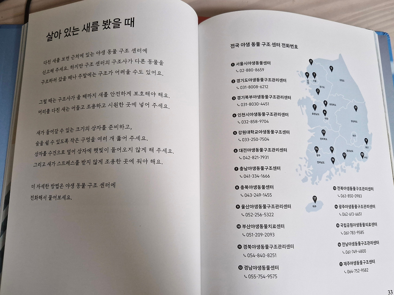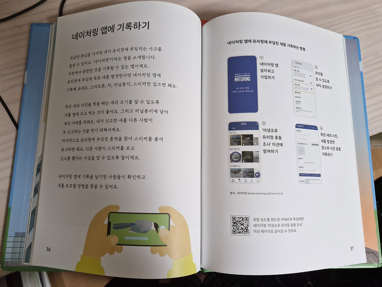 인간이 살기 편하게 만들어 놓은 건물로 인해 방어벽으로 인해 많은 새가 목숨을 잃고 있다는 것은 인간의 이기심을 극명하게 드러내는 일이다. 자연과 공존하며 사는 것이 인간도 살고 자연도 살 수 있는 일이라는 것을 알면서도 로드킬을 당하는 길짐승과 날짐승들을 보호하지 못하고 희생당하는 것을 모르는 척 묻어놓고 살아가는 사람들은 이기적이다. 그런 일에 아무런 말도 못 하고 눈을 감고 있는 나도 이기심 많은 인간이다. 책에는 로드킬을 당한 새가 죽어있을 때와 살아있을 때 할 수 있는 일을 알려준다.