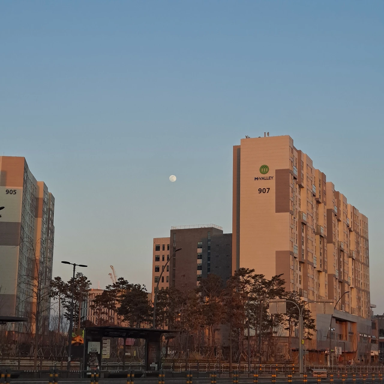 장에서 돌아오는 길 아파트사이로 떠오른 화이트문이 인상적이었다.