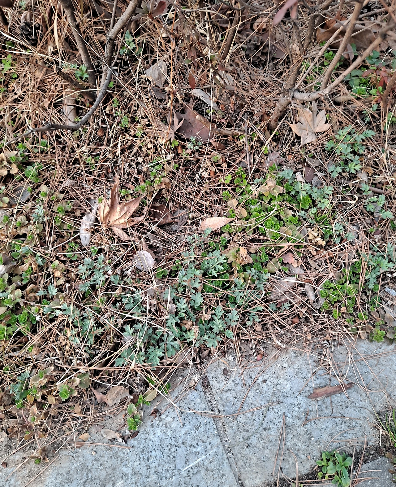 집으로 돌아오는 길 아파트 화단에 어린 쑥이 자라 있었다.