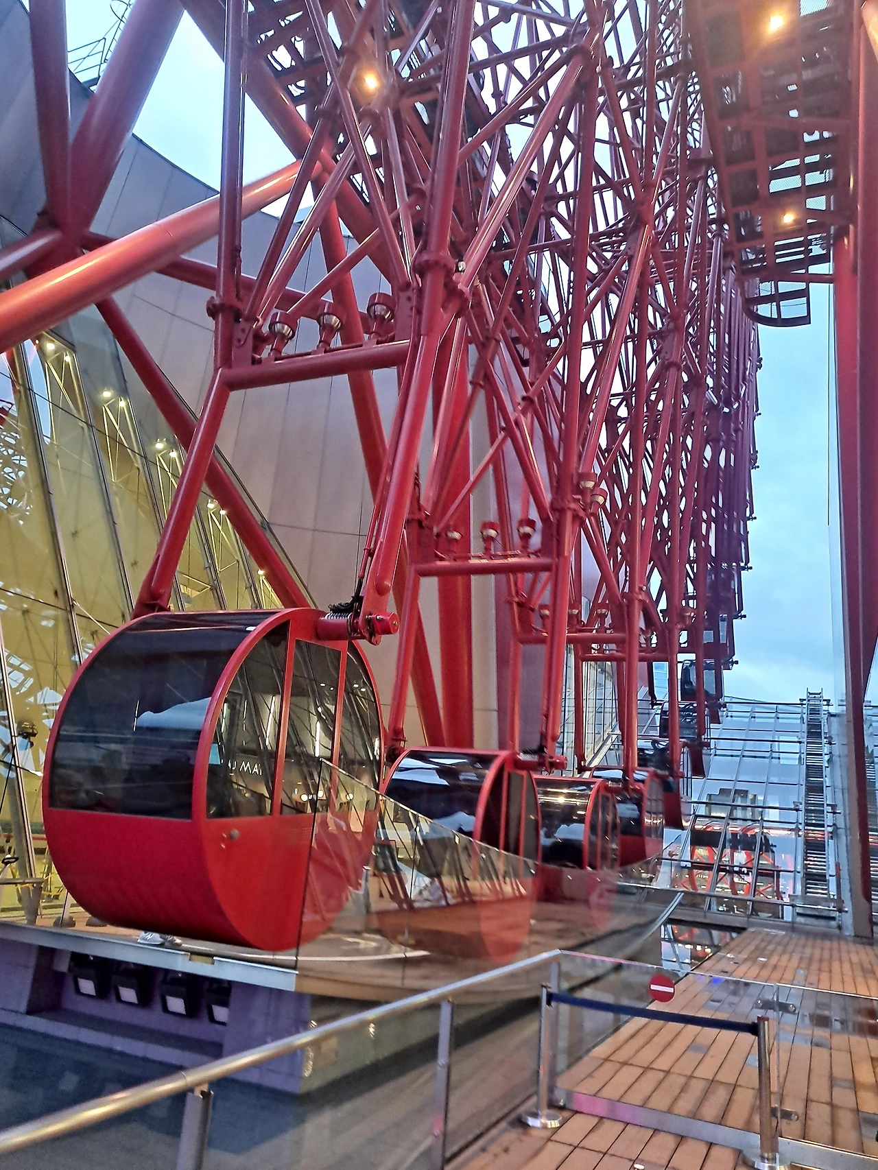 배에서 하선한 후 우메다로 이동했다. 루코아 백화점에 가서 장어덮밥을 먹으려고 했는데 이게 웬일! 우리가 생각했던 곳은 대기인원이 30여 명 대기줄이 있었다. 기다리기엔 너무 시간 낭비인 것 같아 식당가를 뱅뱅 돌았지만, 마땅히 먹을 데가 없었다. 백화점 지하인데 선술집으로 가득 찬 포장마차촌 같은 느낌이었다. 덮밥집에 들어가서 소고기덮밥, 돼지고기 덮밥을 시켜 먹었다. 생수 대신 녹차가 나왔다. 녹차 가루를 탄 물이었는데 나름 괜찮아서 두어 컵 마셨다. 소고기 덮밥도 생고추냉이를 얹어 먹으니 맛있었다. 그리고 요도바시 카메라(쇼핑몰)에 들러 쇼핑을 했다. 신기한 주방기구들이 많이 있어서 재미있게 구경했다. 가위와 도마가 합체한 도마가위가 신기했다. 가챠(확률성 아이템 뽑기 기계) 샾도 많이 있었다. 레고와 게임기만 주로 판매하는 곳도 있었다. 관람차를 타기 위해 백화점을 나와서 다른 백화점으로 이동했다.