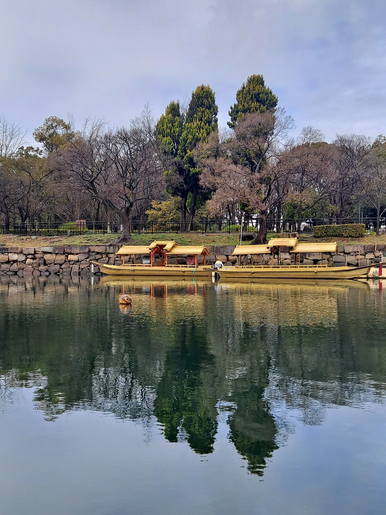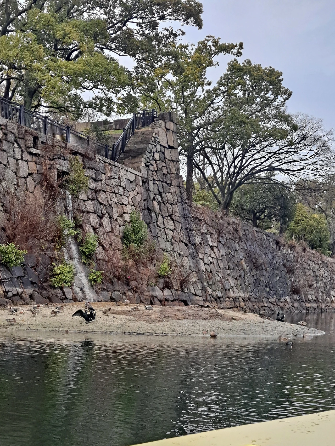 곳곳에 청둥오리와 원앙, 물새 떼가 사람 손이 미치지 않는 곳에 모여 비에 젖은 날개를 말리느라 날개를 펼치고 있었다. 그들의 쉼을 방해하는 건 아닌지 미안한 마음이 들었다. 뱃길을 따라 헤엄치는 청둥오리의 뒷모습, 배가 오면 피하느라 물 위를 달리는 모습이 안쓰러워 보였다. 멀리 보이는 천수각에 비가 그치자, 까마귀 떼가 몰려들기 시작했다. 비를 피하느라 숨어 있었는지 여러 방향에서 무리 지어 날아와 천수각 위에 앉기 시작했다. 수십 마리의 검은 새들이 몰려와 천수각 위에 밀집해 있는 모습이 잠시 섬뜩해 보였다. ‘센과 치히로의 행방불명’에 나오는 유바바가 잠시 생각났다.