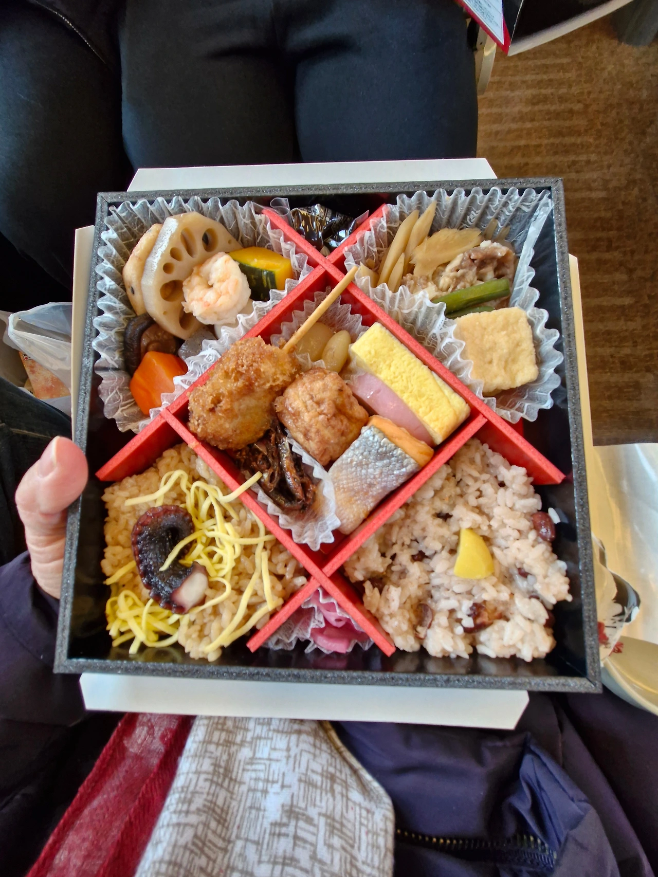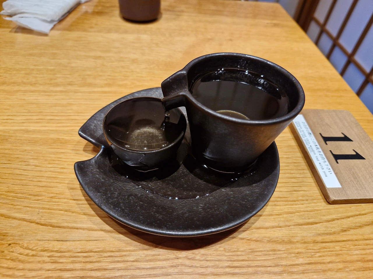 미리 검색해 놨던 음식점을 찾아갔지만 교토역이 너무 복잡해서 어디에 위치한 곳인지 찾을 수 없었다. 그래서 두 번째로 검색했던 곳으로 갔다. 가격은 좀 비싸지만 맛있는 곳이라고 했다. 교토역을 뱅뱅 돌아 겨우 11층으로 가는 엘리베이터를 찾았다. 다행히 대기인원이 많지 않아 30분 정도 기다렸다. 방으로 자리를 준비해 주었다. 가장 크기가 큰 장어덮밥과 작은 크기의 덮밥 두 개, 오차에 말아서 먹는 히츠마부시를 하나 시키고 튀김도 하나 시켰다. 사케도 한잔 시켰는데 잔이 특이하게 생긴 잔에 술을 따라 주었다. 옹달샘 아래 작은 잔이 있어 따라 마셨다. 장어덮밥과 장국, 일본식 야채 절임(쓰케모노)이 다였지만 장어는 부드럽고 밥도 맛있었다. 튀김은 새우, 고추, 오징어, 단호박 튀김이 나왔다. 갓 튀겨서 따끈하고 바삭바삭했다.