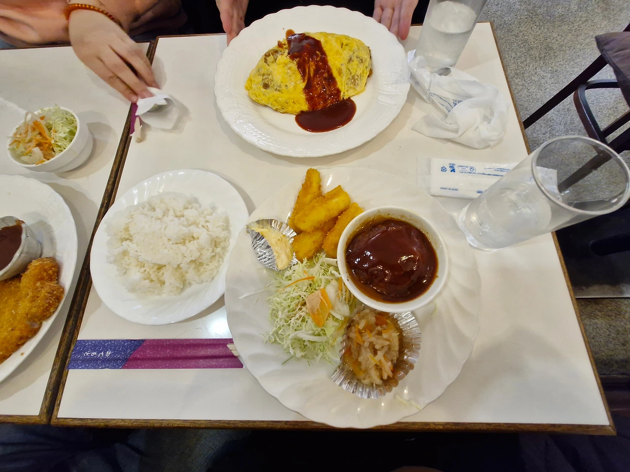 여행 이틀째 교토에서 유명하고 대표적인 절 청수사에 가기로 했다. 명탐정 코난에 나왔던 절이라 가보고 싶었다. 캐리어를 숙소에 맡기고 걸어서 갔다. 가다가 아침 겸 점심으로 경양식집에 들렀다. 오래된 집이었다. 할아버지 한 분이 청바지를 입고 메뉴판과 물을 갖다주었다. 나는 모둠 정식을, 큰딸은 오므라이스, 남편은 돈가스, 작은딸은 나폴리탄 스파게티를 시켰다. 나폴리탄 스파게티는 일본에서 만들어진 메뉴라고 한다. 토마토케첩을 넣어 만든 스파게티에 양파, 피망, 햄 등을 추가해서 만들었다고 한다. 음식은 금방 나왔고 샐러드가 듬뿍 올려져 있어 좋았다. 모둠 정식은 오징어튀김과 함박스테이크가 같이 나와서 밥이랑 먹었다. 아이들도 맛있게 먹었다. 흡연이 가능한 식당이라 한 사람이 계속 담배를 피워 좀 불편했지만 어쩔 수 없었다. 길가에 음식점이 거의 없어 그곳에서 먹을 수밖에 없었다.