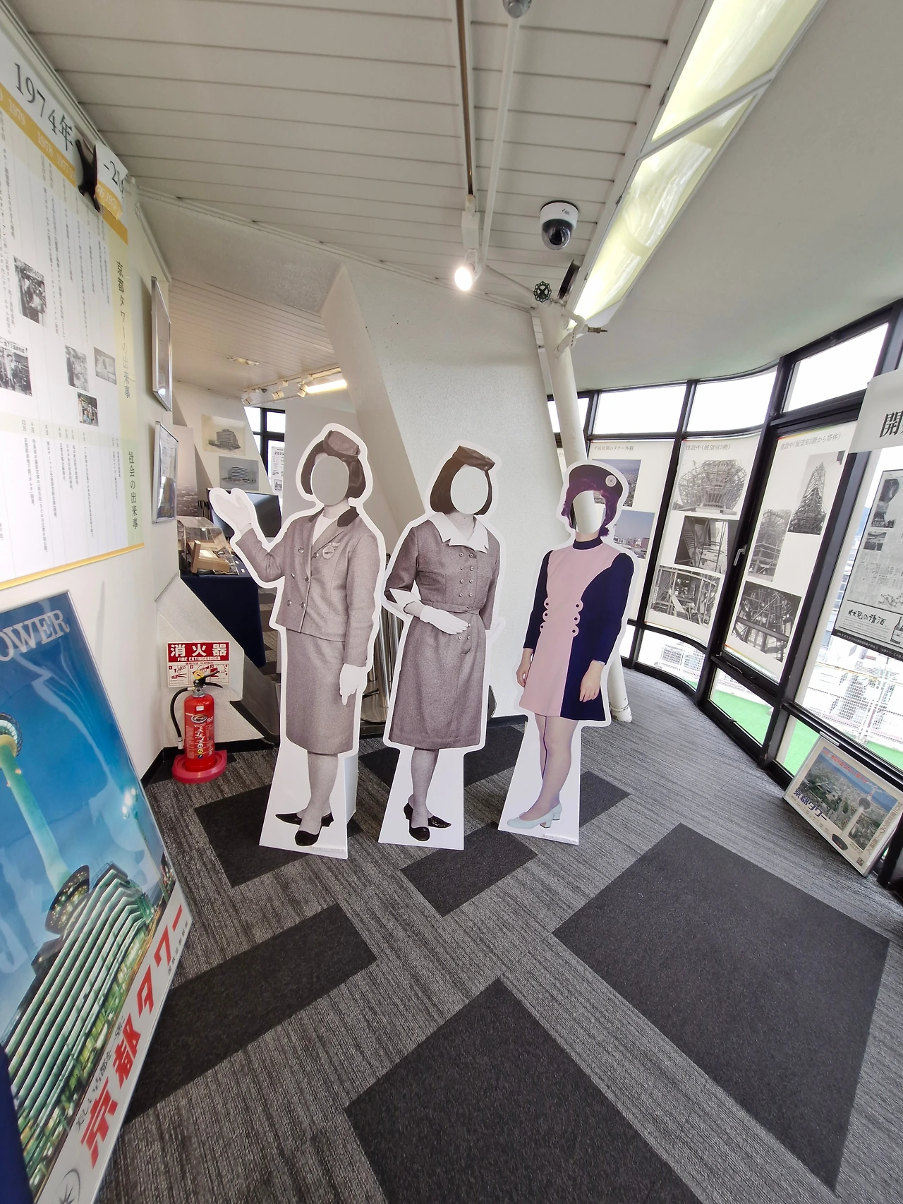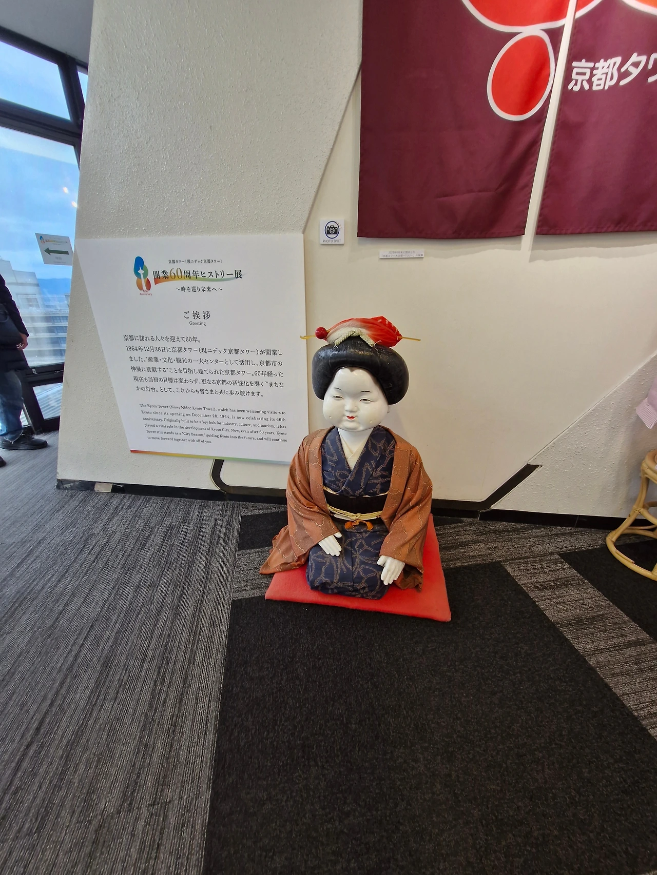 식사하고 교토타워로 갔다. 입장료는 1인당 900엔이었다. 엘리베이터를 타고 꼭대기에 도착했다. 어젯밤에 비가 와서 교토 시내가 한눈에 깨끗하게 보였다. 여기저기 절이 많이 있었다. 제2차 세계 대전 때 미군이 교토는 문화재가 많은 곳이라 폭격에서 제외했다는 말도 있다. 그래서인지 작고 큰 절들이 많이 보였다. 교토타워 60주년 기념 스탬프를 다섯 개 찍으면 교토타워 그림이 있는 종이접기 기념품을 준다고 해서 돌아다니면서 스탬프를 찍었다. 여직원이 사진을 찍어주고 있었다. 교토타워 60주년 기념 신문에 실린 모습으로 인화해 주었다. 진짜 신문에 가족사진이 실린 것 같았다. 사진을 크게 인화하면 1,500엔이라고 해서 한 장 인화해서 작은 종이 액자와 같이 받았다. 한 달 이내 원본사진을 다운로드할 수 있는 바코드도 받았다. 교토타워승무원 복장도 시대별로 전시되어 있었다. 의외로 아기자기하게 꾸며져 있어 교토 시내도 구경하고 재미있었다. 간사이공항으로 가는 길에 교토역에서 에끼벤을 사서 먹으면서 왔다. 맛있고 즐거운 여행이었다.