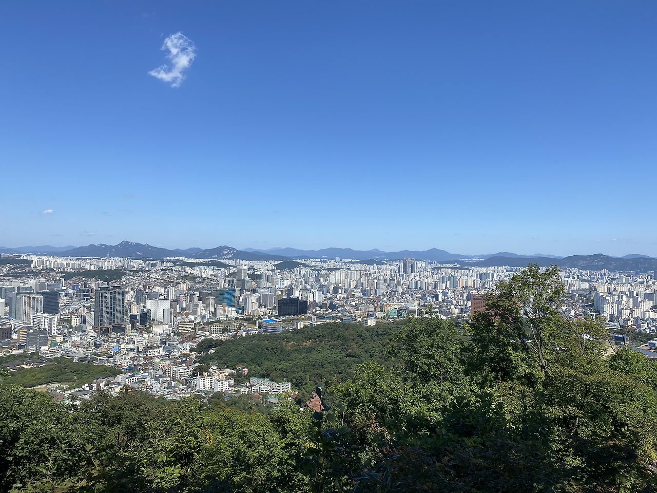 그 표정의 의미는 내가 하산에 접어들고 나서야 비로소 알게 된다. 올라가는 일이 치열했다면 내려가는 일을 목전에 두고는 편안함과 가벼움을 느낀다. 같은 길일지라도 걸음에 임하는 마음 자체가 달라진 것이다. 덕분에 내려가는 길에는 비로소 옆을 보게 된다. 오르는 길에는 미처 보지 못했던 서울의 모습을, 나뭇잎 사이로 아득하게 보이는 말간 하늘을. 그리고 바닥에 쓰여있는 ‘천천히’ 따위의 문구를.