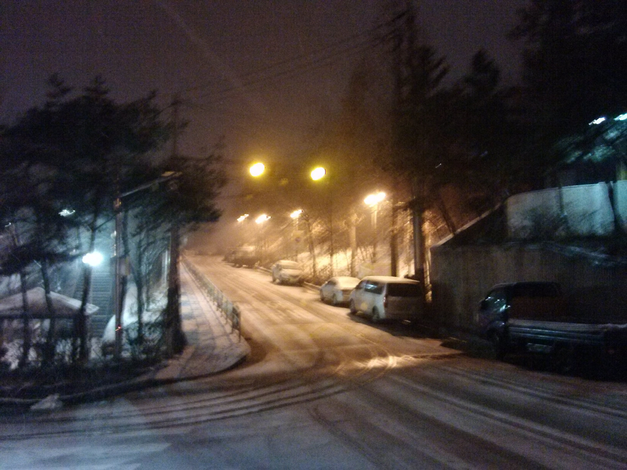 순간 이동은커녕 오히려 걸어서 금천대로까지 내려가야 했다. 뒤뚱뒤뚱 훌쩍훌쩍. 배고픈데 코를 엄청 마셨다. 안양 가는 초록 버스에 앉자 갑자기 따끈한 곳에 들어갔을 때 몸이 풀리면서 찡~하는 느낌이 났다. 안양에 도착했을 땐 눈이 더 흩날리고 있었다.