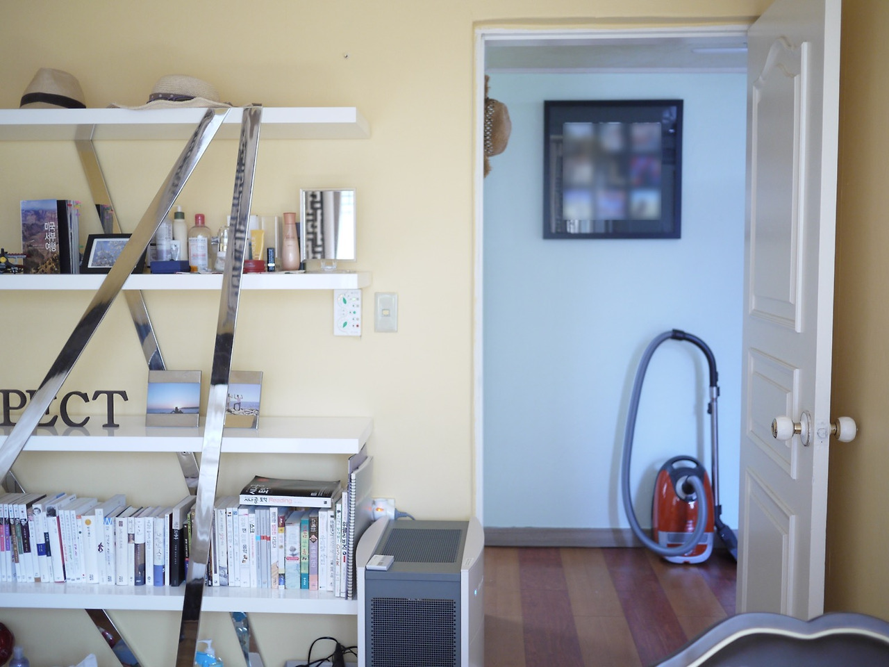 이렇게 보니 선반 위에 자리한 화장대가 눈에 띈다. 아직도 나에겐 화장대가 따로 없다.