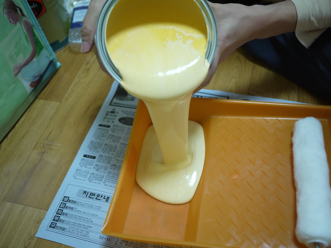 이사 비용을 최대한 아끼기 위해서 이사는 반 포장 이사로 결정했다. 내가 박스를 얻어 미리 포장하고 남편이 센터 아저씨들을 돕기로 협의를 해두었다. 장판은 그대로 박박 닦아서 쓰기로 하고, 도배만 셀프 페인팅으로 대체하기로 결정.