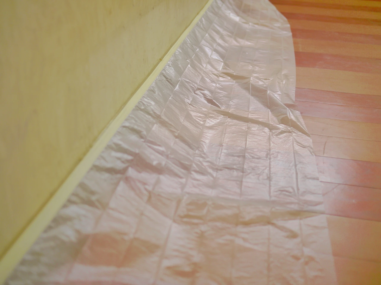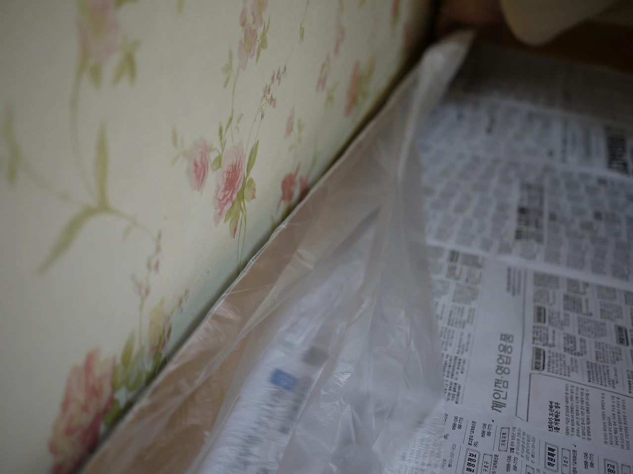 비닐과 마스킹 테이프로 장판을 보호하기