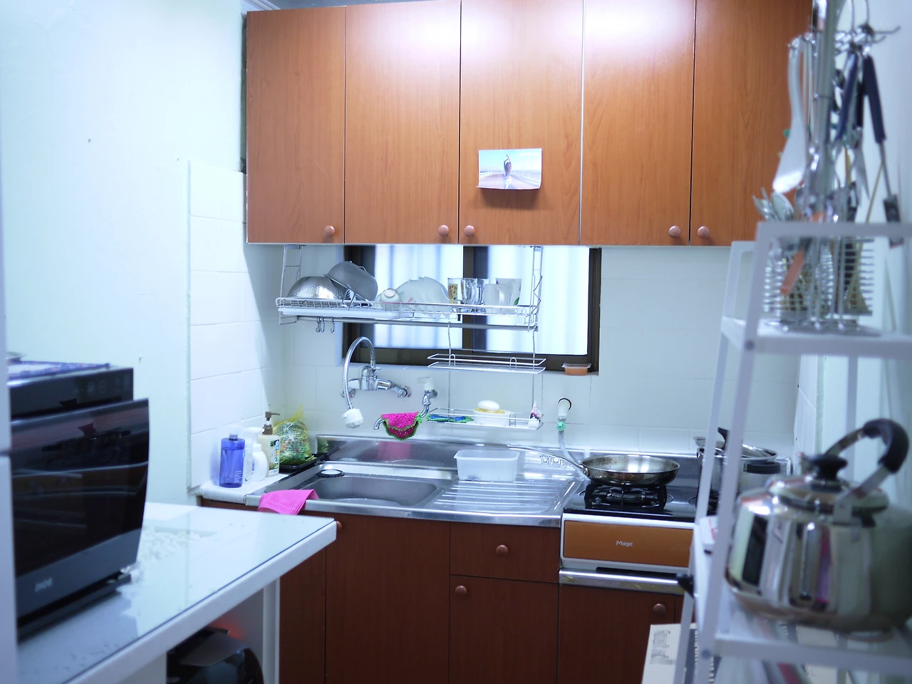 선발대인 빨간 청소기 밀레를 가져와 청소부터 시작했다. 한 명이 청소기를 돌리는 동안 한 명은 싱크대를 맡았다.