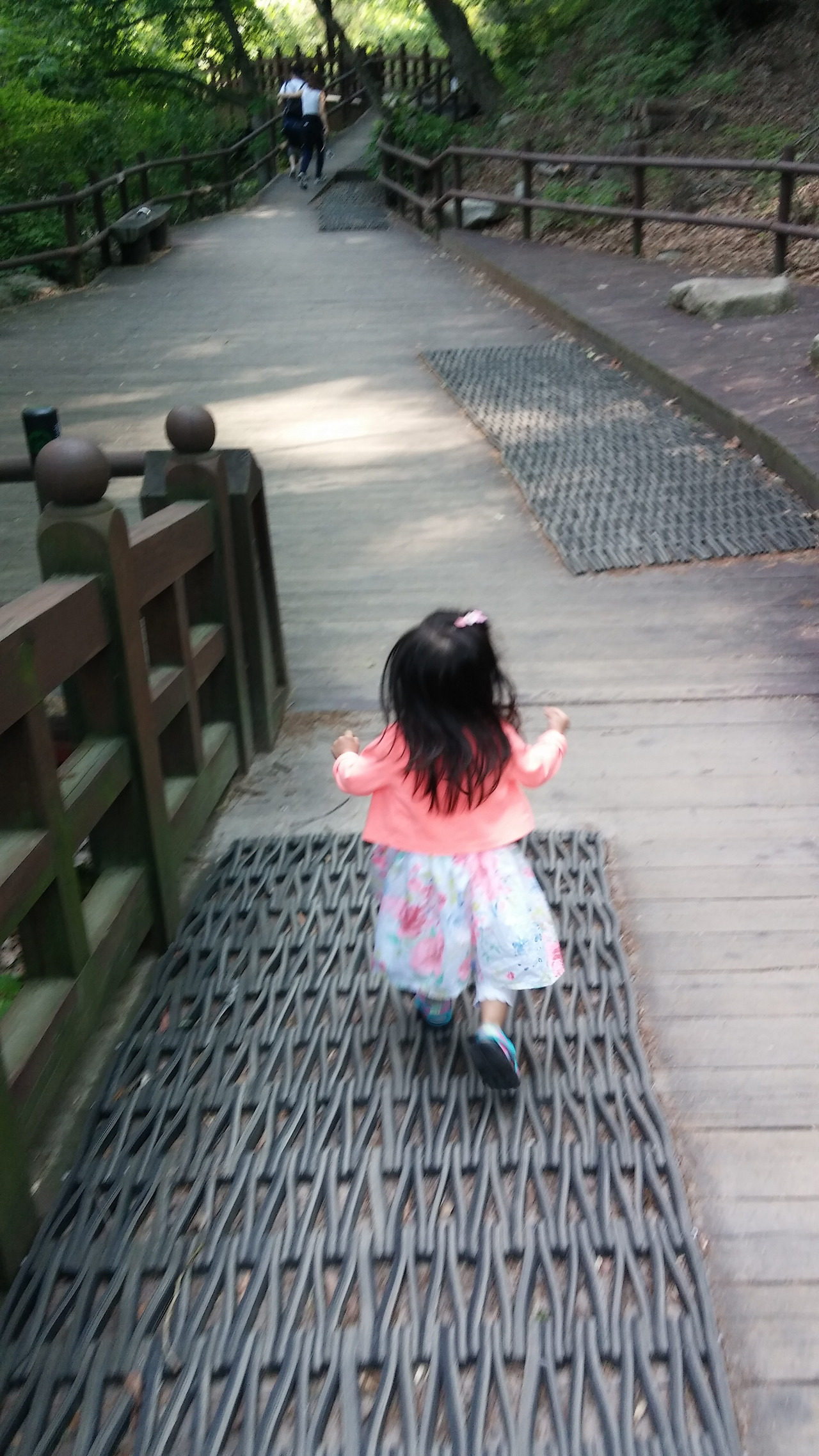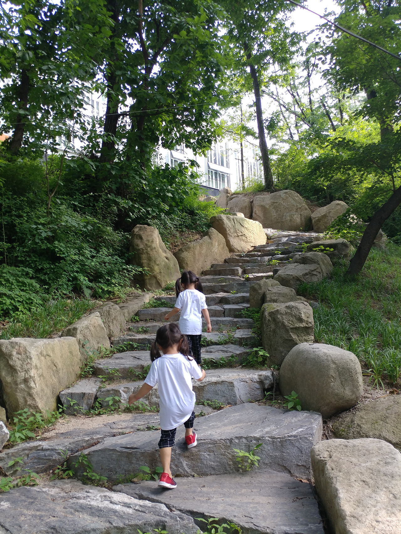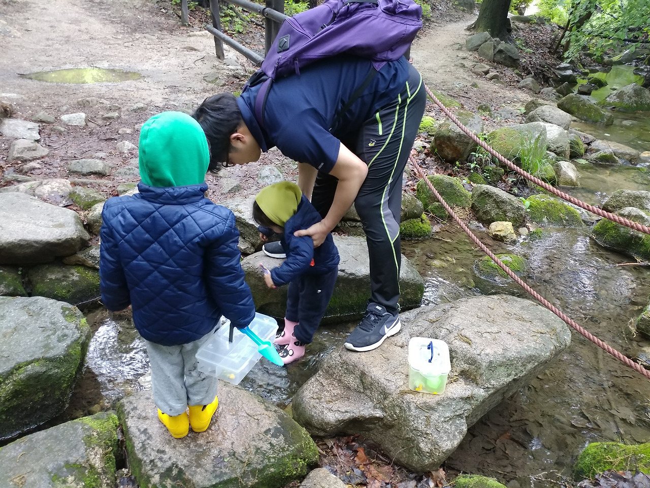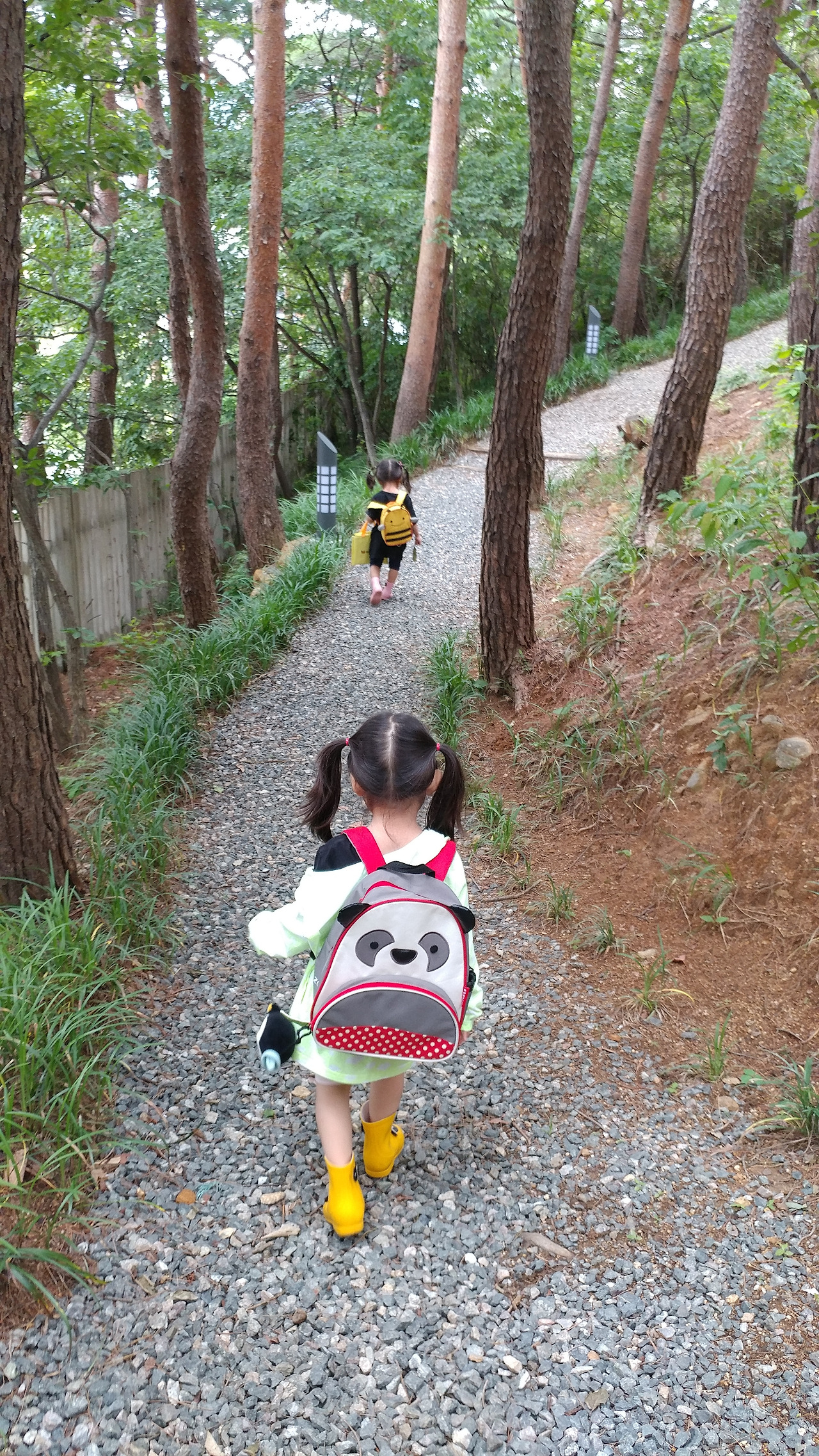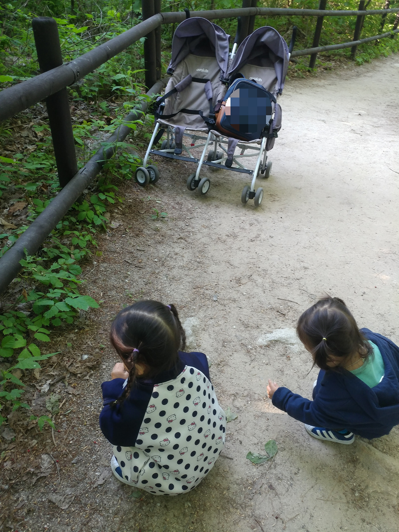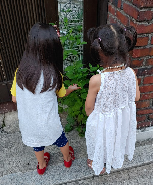 우리는 집 안에서도 다양한 자극을 주려고 이런저런 놀이들을 해주지만, 늘 머무는 곳이기에 결국엔 새로움이 고갈된다. 자연은 말이 필요 없는 자극의 노다지! 자매가 함께 새소리를 듣고 다람쥐를 보고, 냇물에 손을 담그고 돌멩이를 떨어트려 퐁당! 하고 가라앉는 모습을 보았다.