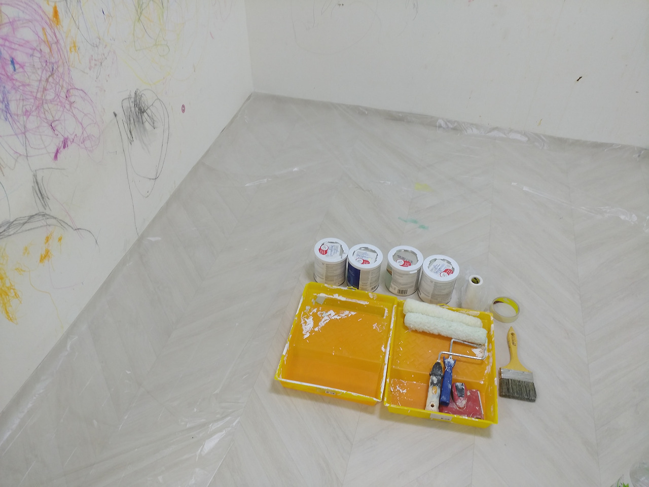 할무니 댁에 보내 놓고, 페인트 칠하기