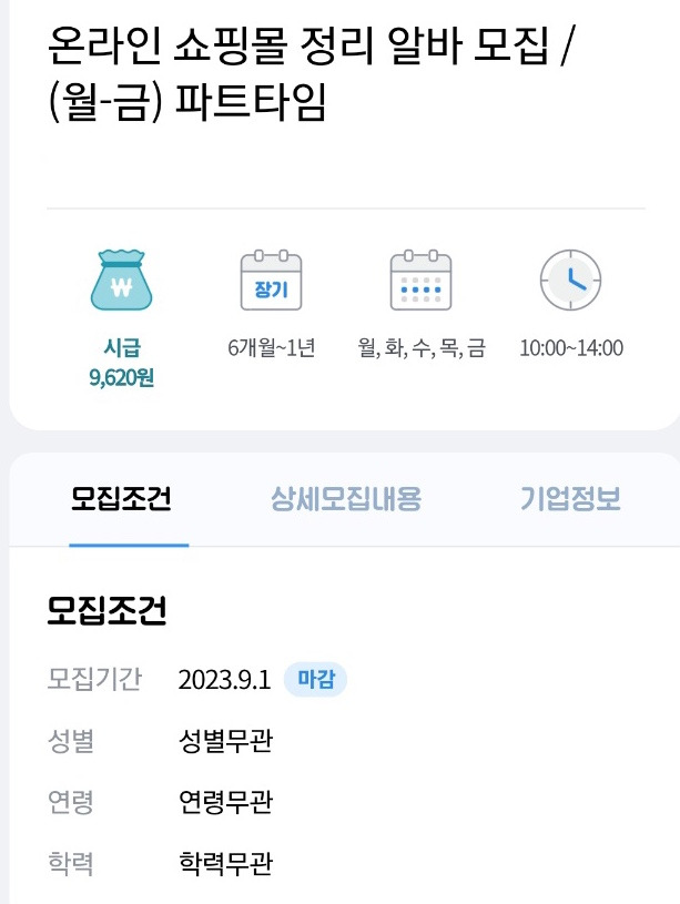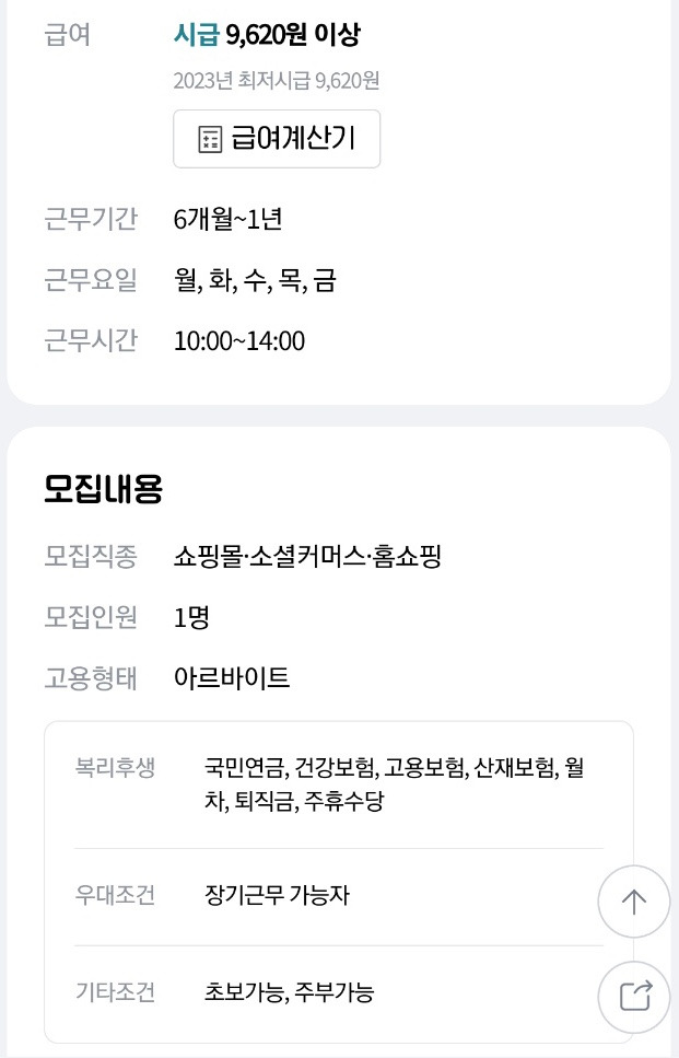 시간도 딱 좋고, 주 5일인 것도, 4대보험 되는 것도 좋은데.